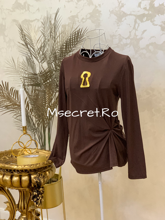 ReducereBluza maro cu accesoriu auriu