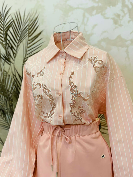 Camasa roz din bumbac cu detalii aurii