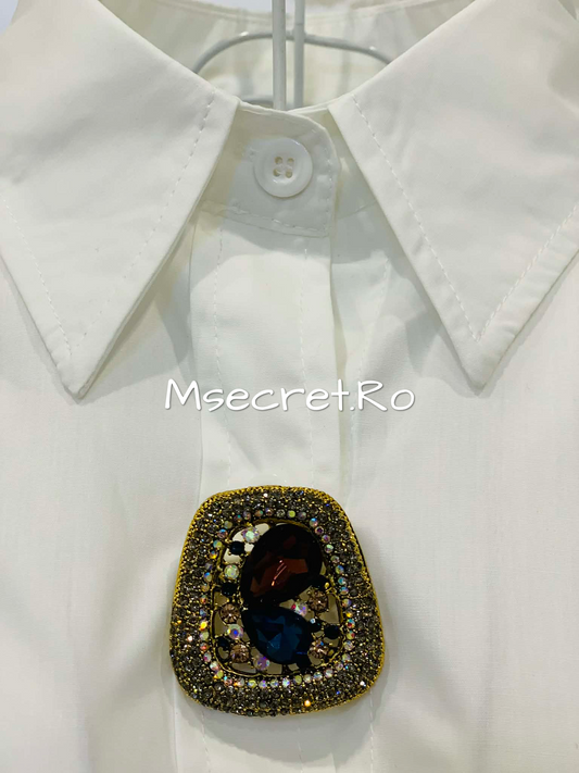 Camasa alba din bumbac cu detalii aurii