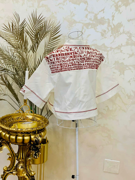 Camasa alba din bumbac cu detalii rosii