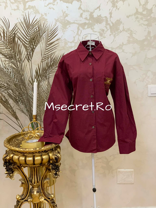 Camasa rosie din satin cu detaliu auriu