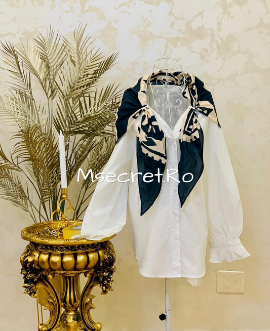 ReducereCamasa alba din bumbac cu cravata