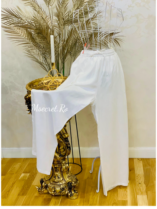Compleu alb din bumbac format din vesta si pantaloni lungi