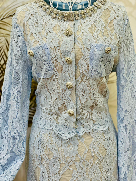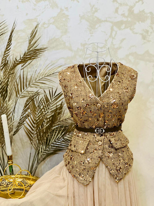 Compleu bej Couture din Tweed cu vesta și Fusta