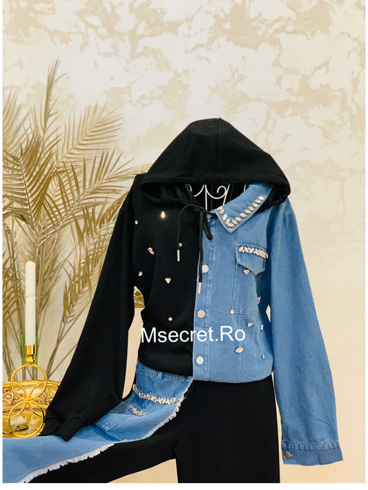 Costum office cu sacou si pantaloni cu aplicații bijuterie