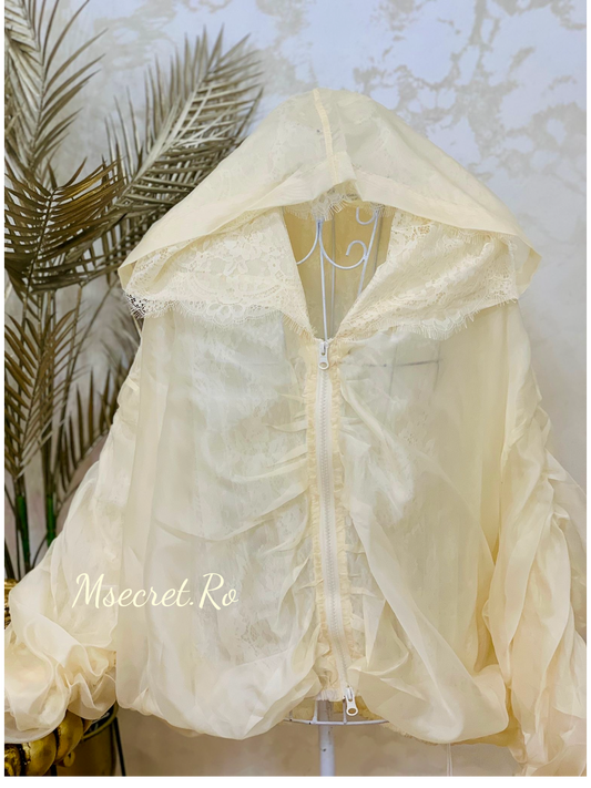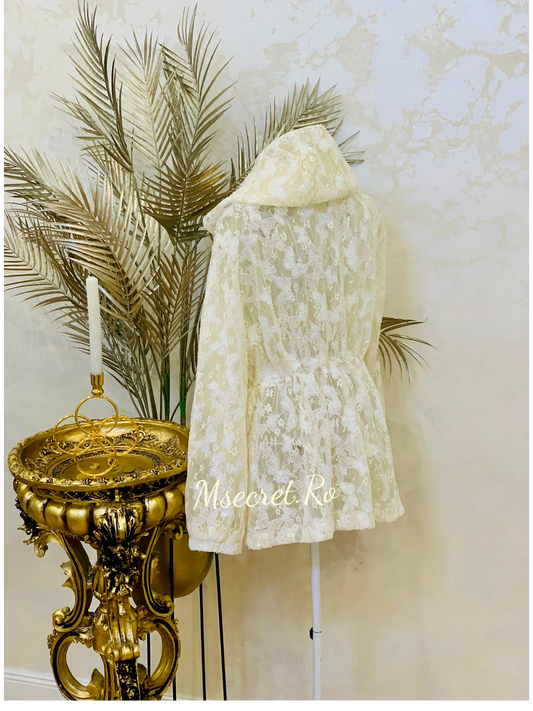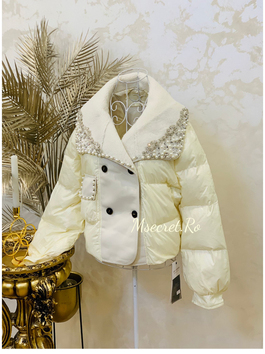 Geaca impermeabila, antivant umpluta cu puf, decorata cu pietre