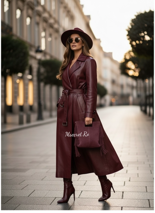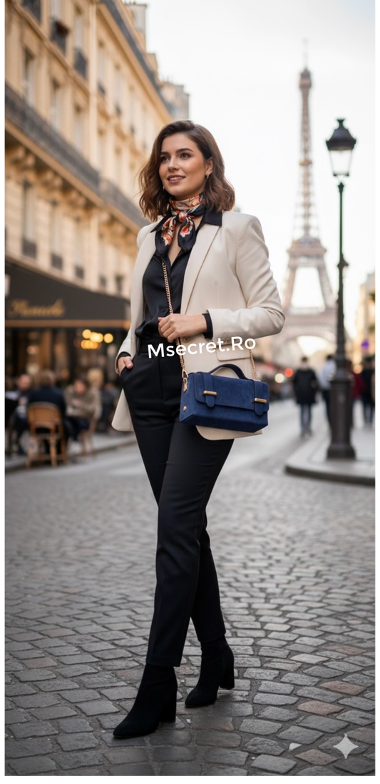 Geanta din piele naturala intoarsa cu accesorii elegante