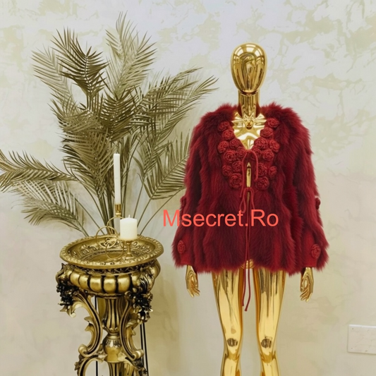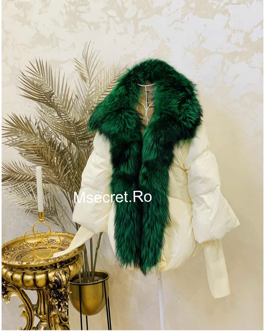Geaca cu guler de blana de vulpe umpluta cu puf