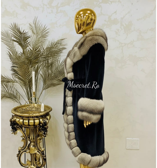 Geaca cojoc cu blana neagra de vulpe luxoasa