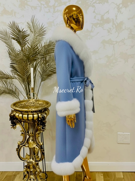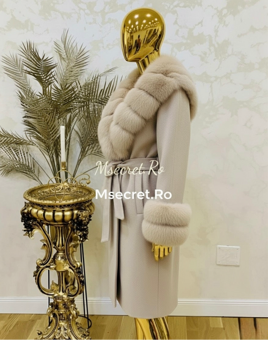 Geaca cojoc cu blana alba de vulpe luxoasa