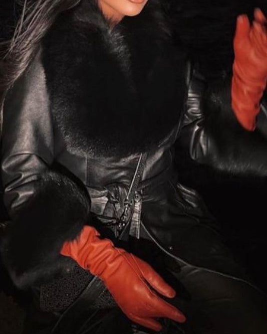 Geaca de piele cu guler de blana naturala