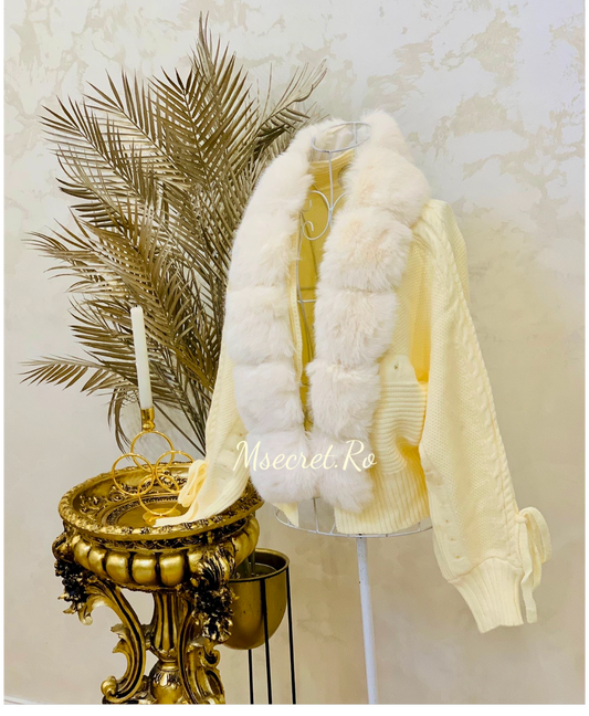 Haina de lana cu guler de blana, detasabil