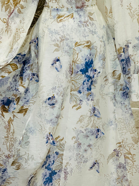 Compleu maxi din in cu imprimeu floral delicat