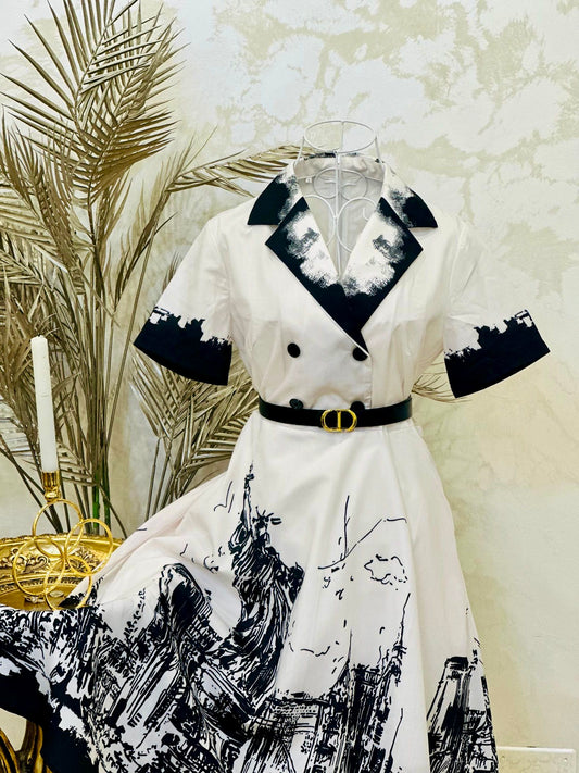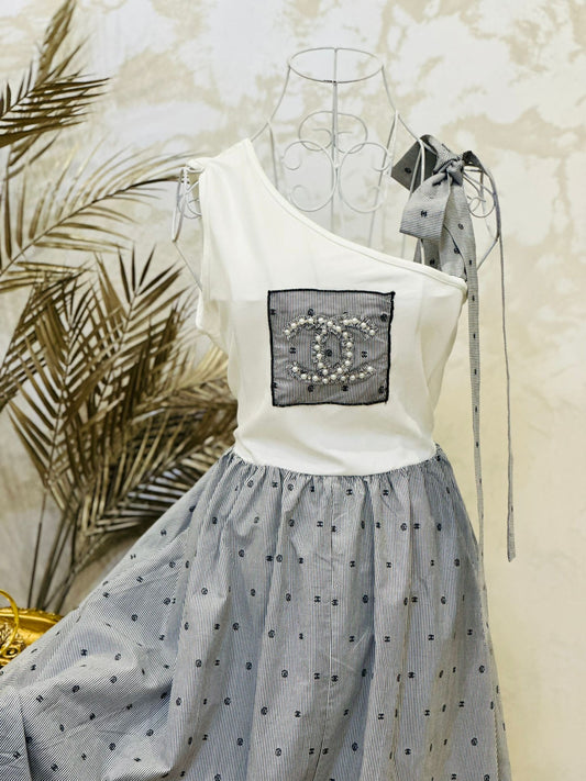 Rochie Parisienne Charm din bumbac brodat și top asimetric
