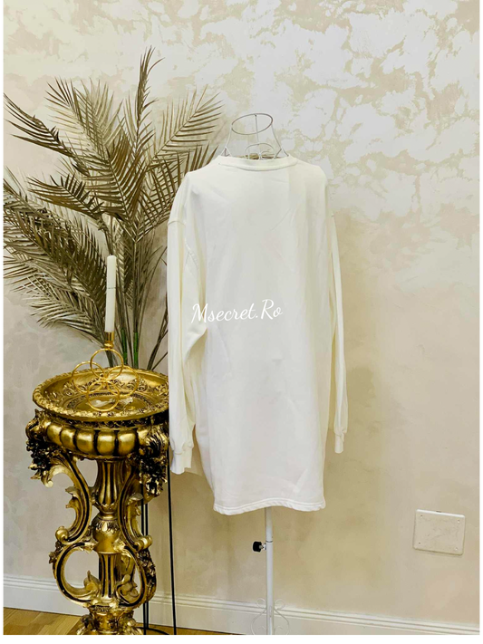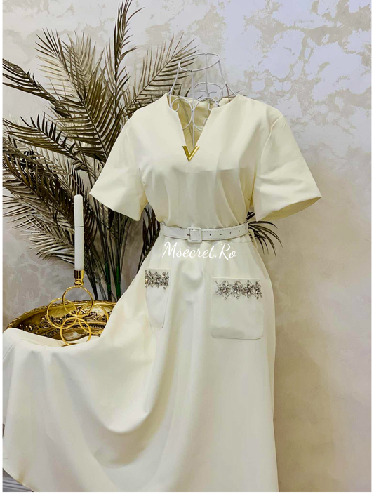 Rochie crem mici cu aplicatii si curea, maneca scurta
