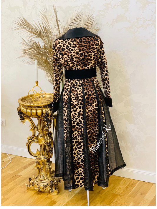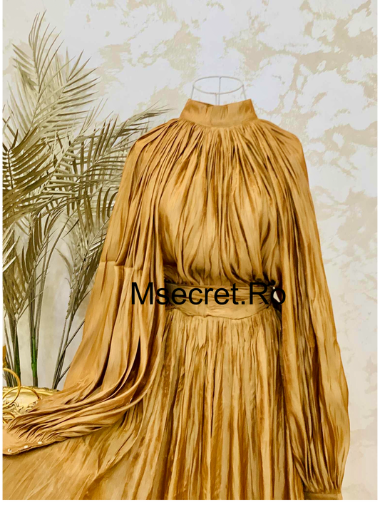 Rochie lunga satinat cu guler înalt și mâneci ample