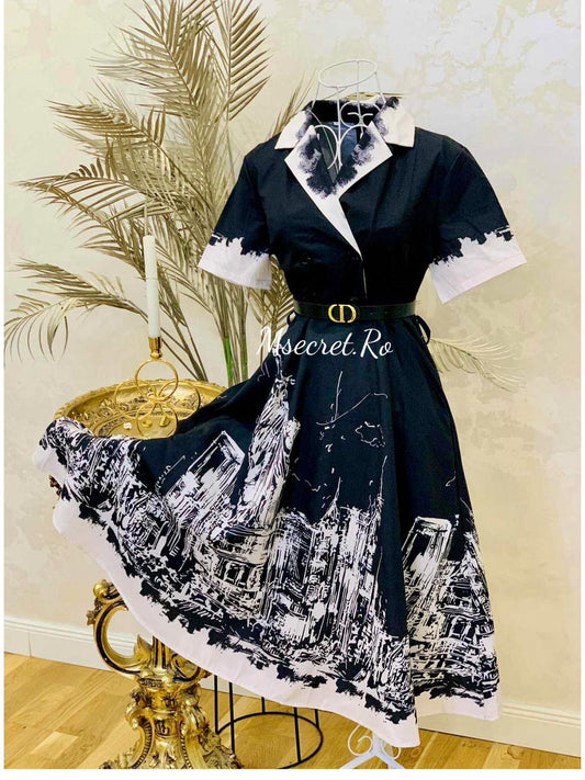 Rochie Parisienne Charm din bumbac brodat și top asimetric