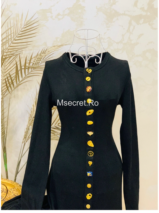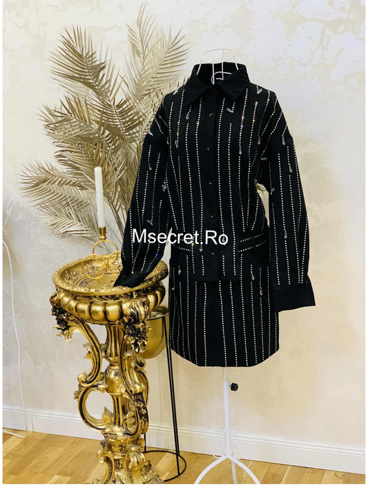 Compleu tricot negru cu aplicații bijuterie cu rochie si sacou