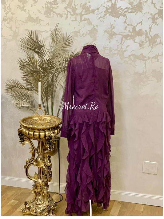 Rochie lunga din voal cu volane și fundă statement