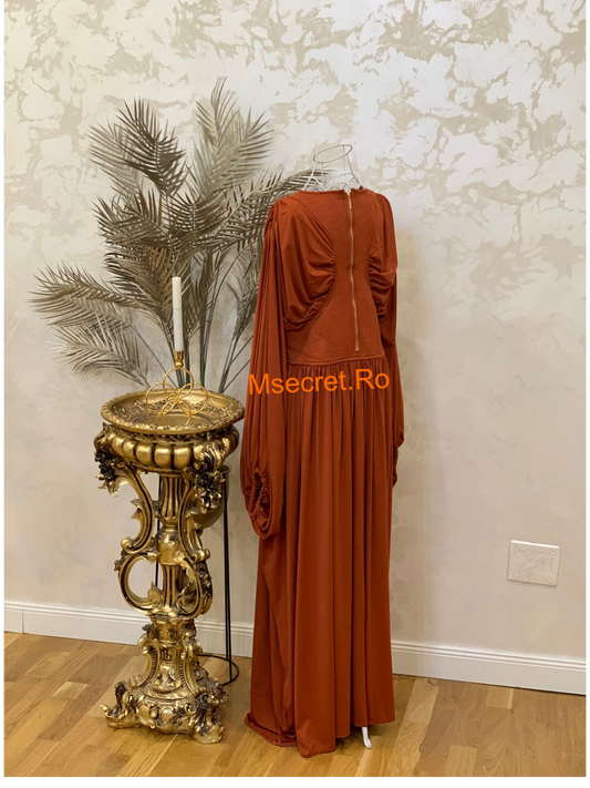 Rochie lunga elegantă cărămizie cu mâneci ample