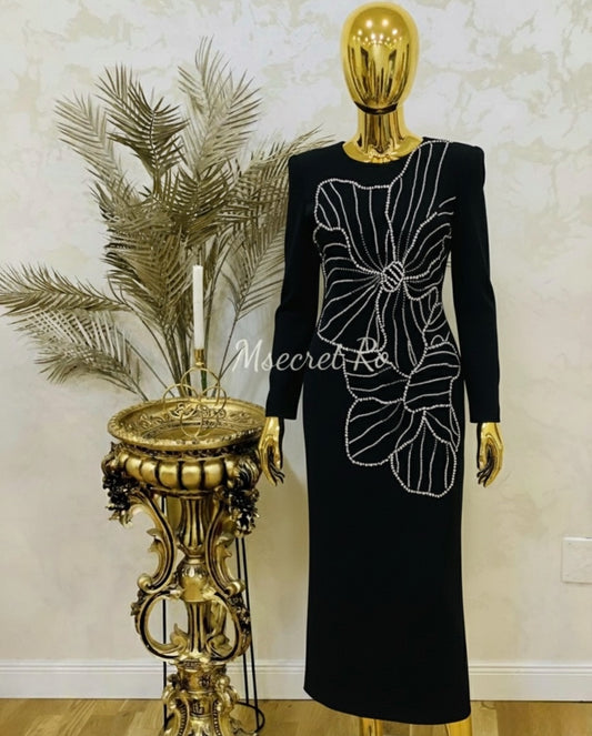 Rochie midi neagra cu aplicatii din pietre