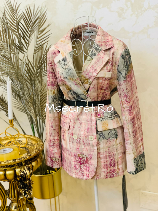 Sacou dama piele intoarsa cu imprimeu artistic