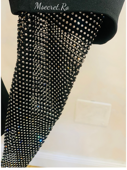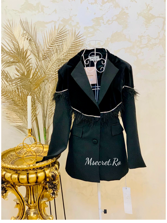 Sacou negru elegant, accesorizat cu pietre,pene si catifea