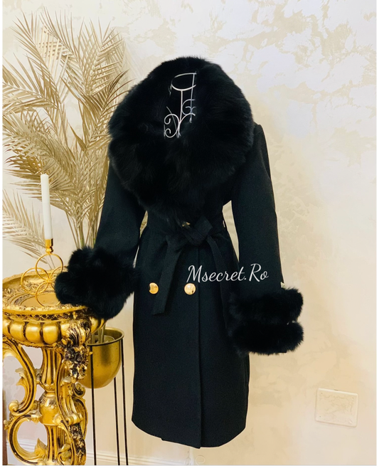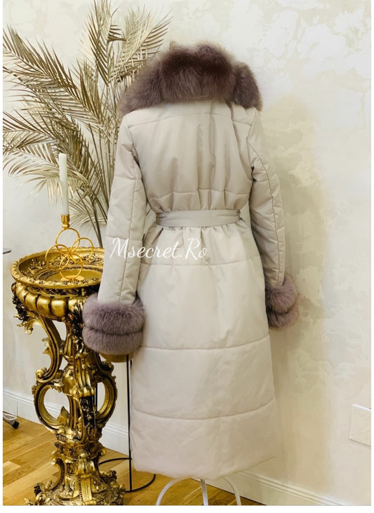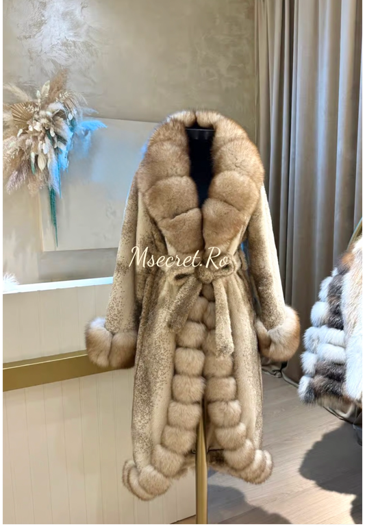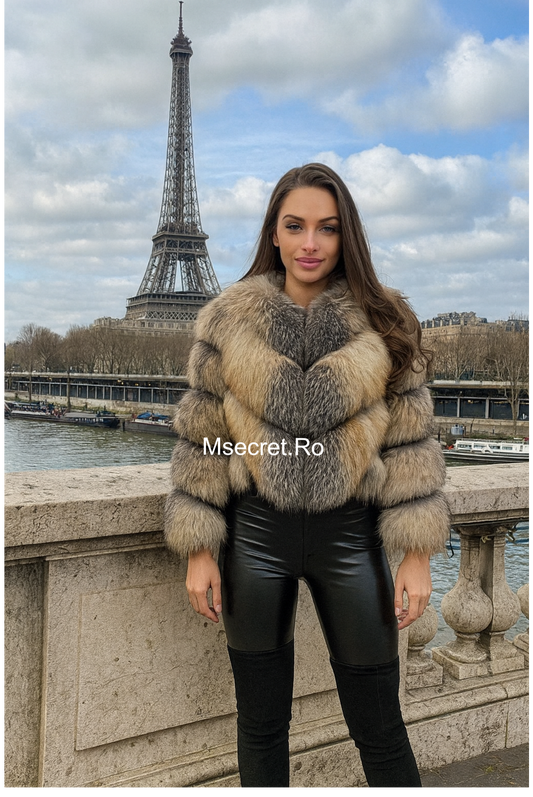 Geaca cu blana de vulpe, alcantara si inserii de fas