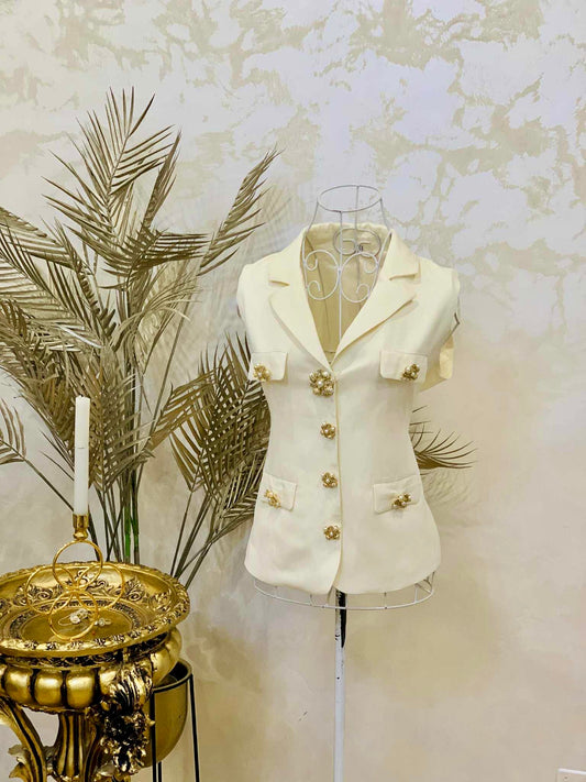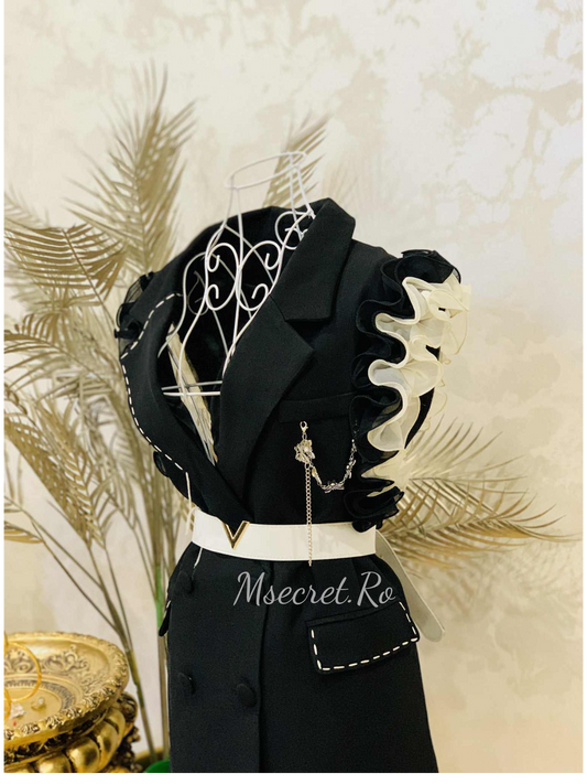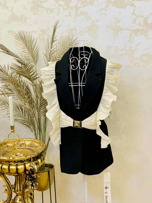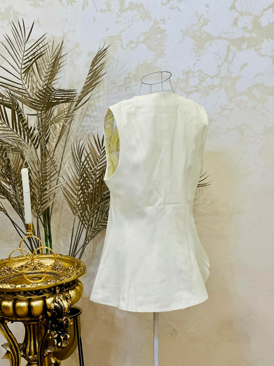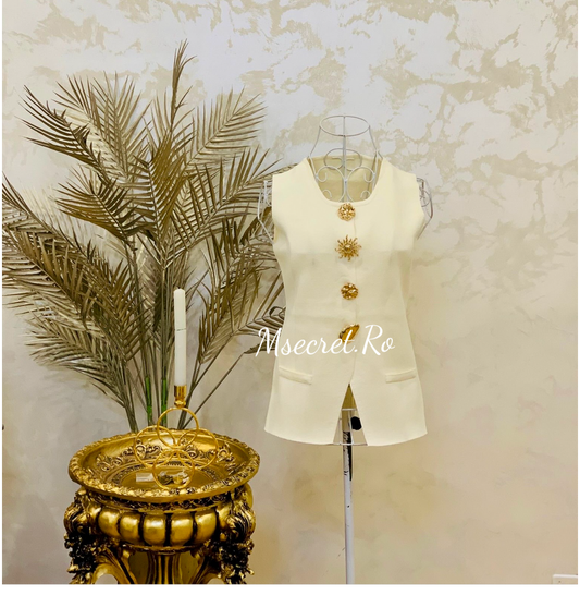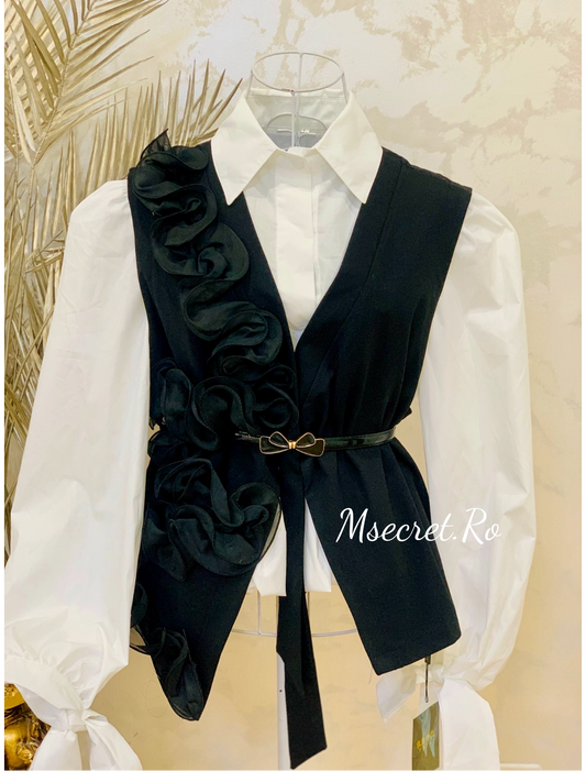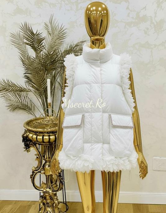 Vesta din bumbac, care iti scoate in evidenta talia. O poti purta la tinutele de zi, mai ales daca doresti sa scoti in evidenta linia taliei. Adauga volum cu textura sa si cu detaliile sale fine vei iesi in evidenta numaidecat.