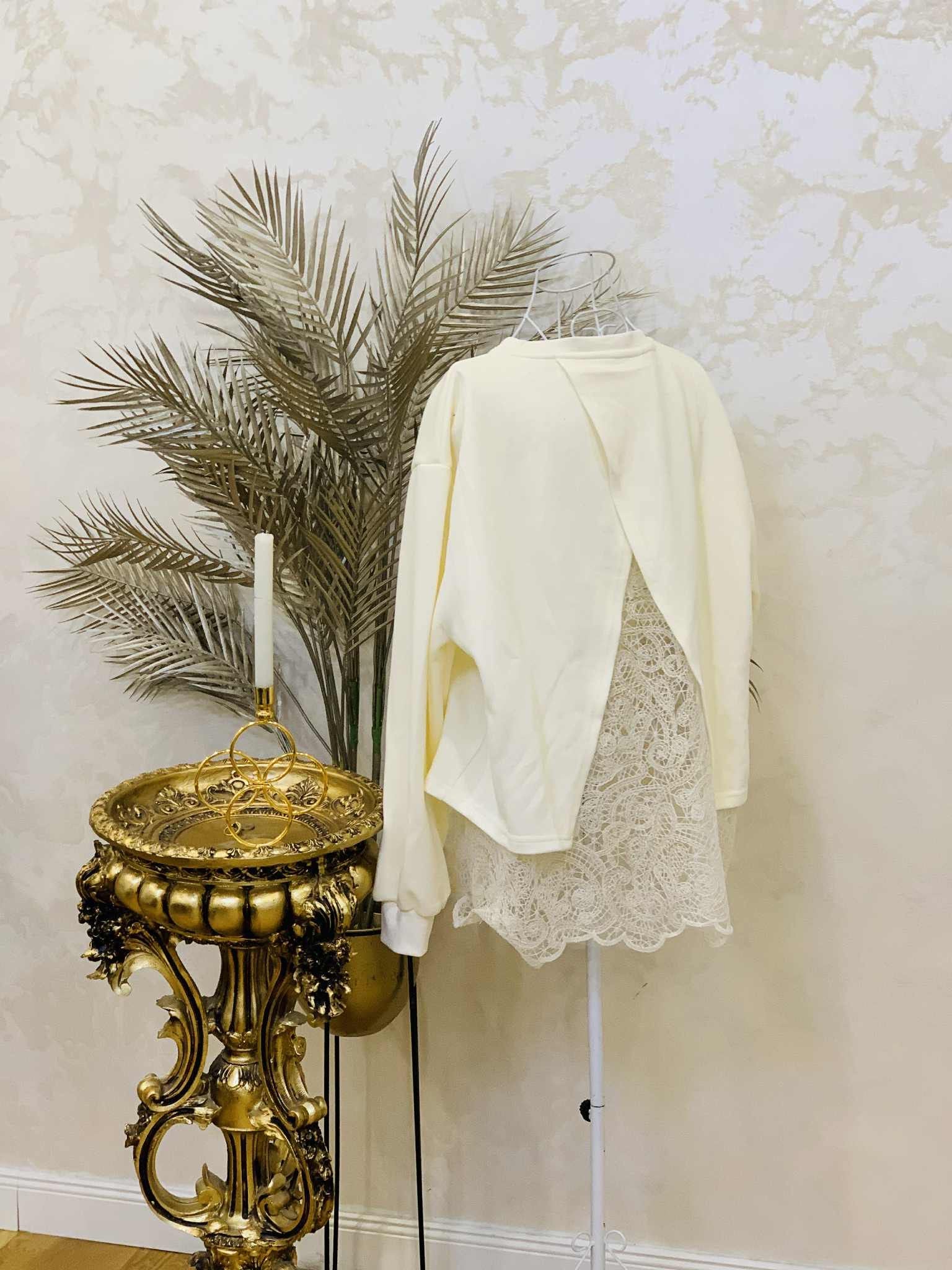 Bluza este realizată dintr-un material moale și plăcut, într-o nuanță de ivory rafinat, ideală pentru ținutele de zi sau pentru un look feminin de seară. Aplicele strălucitoare amplasate pe partea din față adaugă un plus de eleganță, transformând o piesă basic într-una cu adevărat specială.