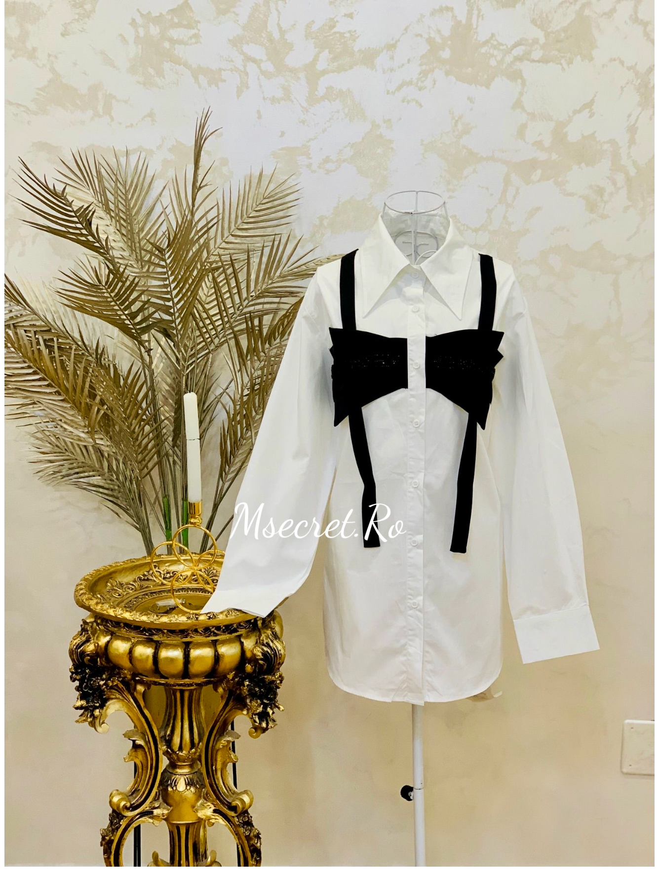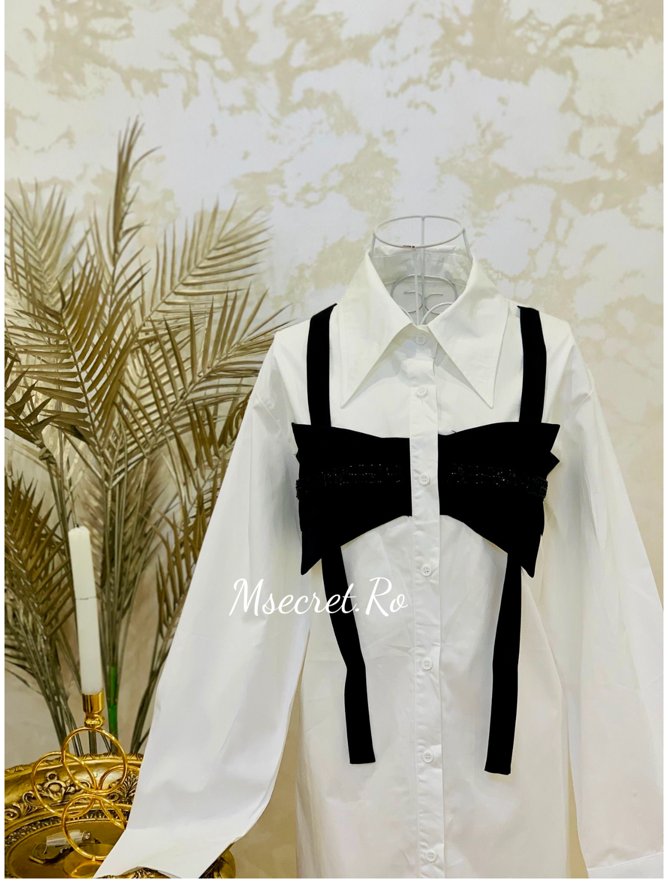 - 🤍 Cămașă albă clasică reinterpretată într-un design avangardist