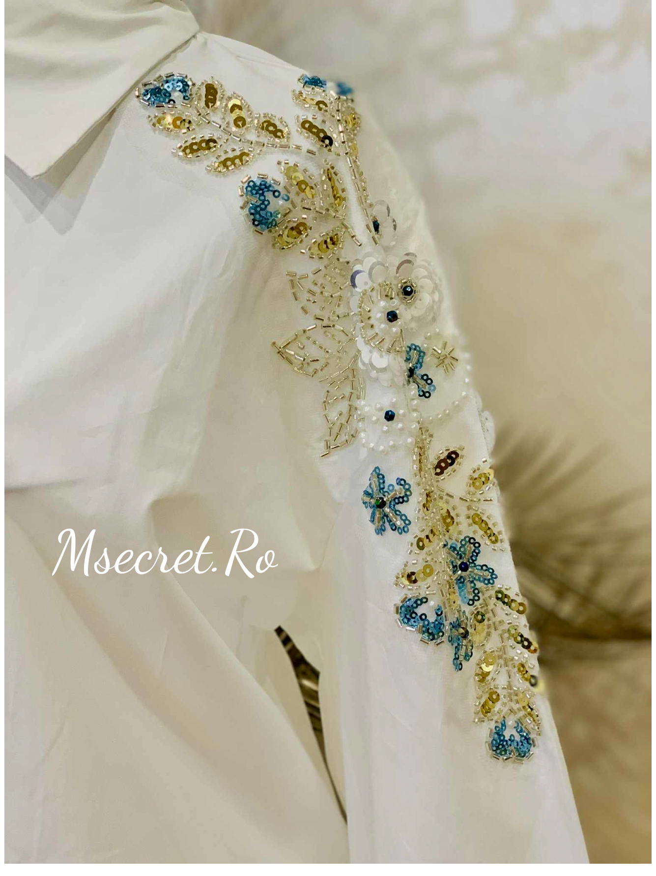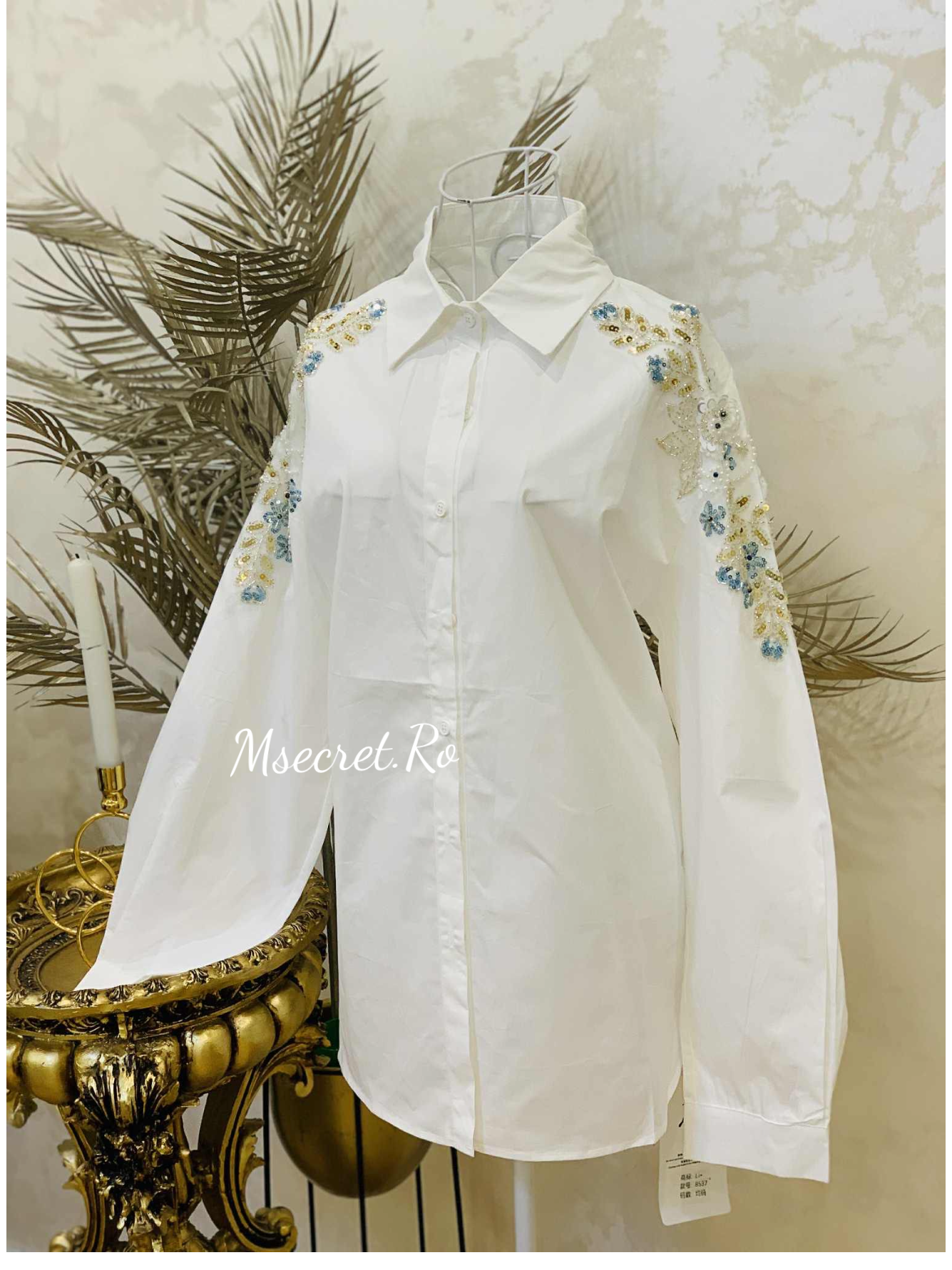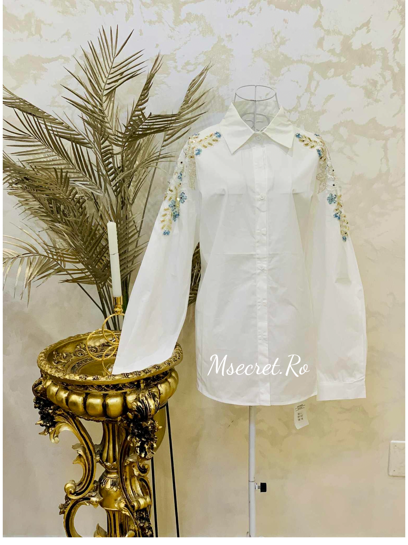 - 🤍 Cămașă albă clasică reinterpretată într-un design avangardist