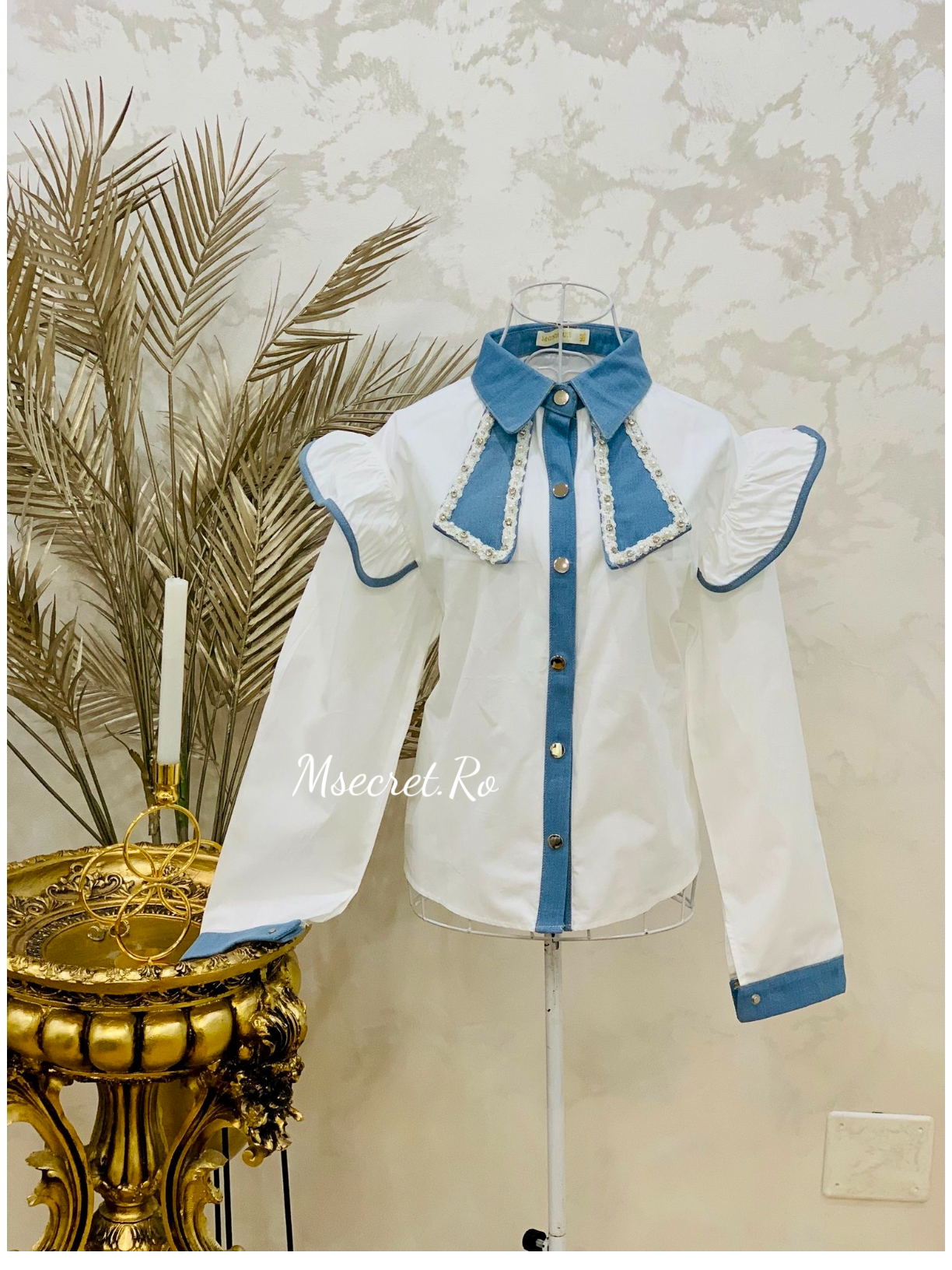 Camasa din bumbac cu maneca lunga cu pietre si denim