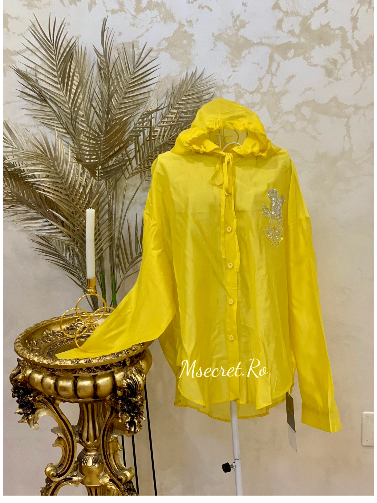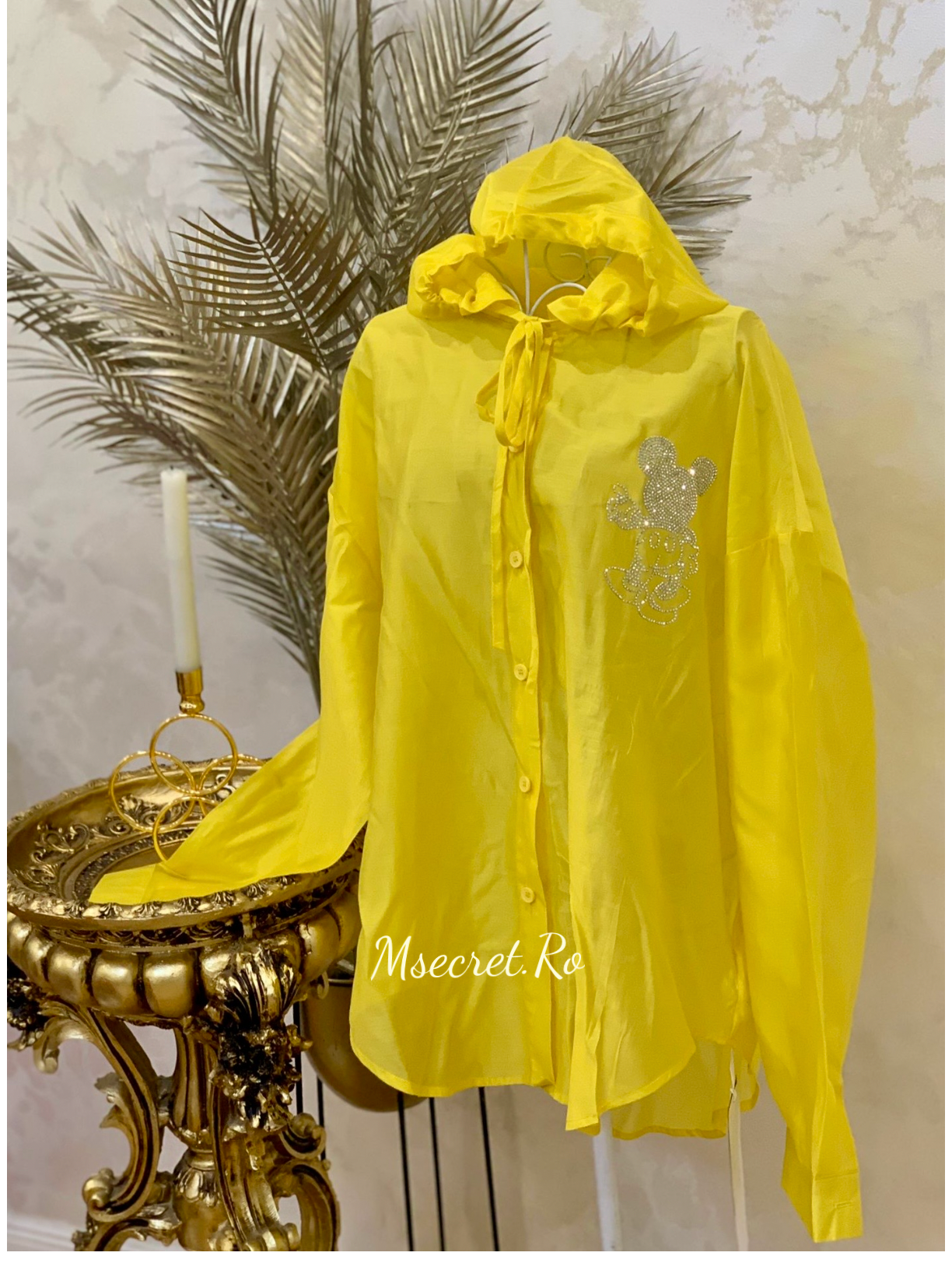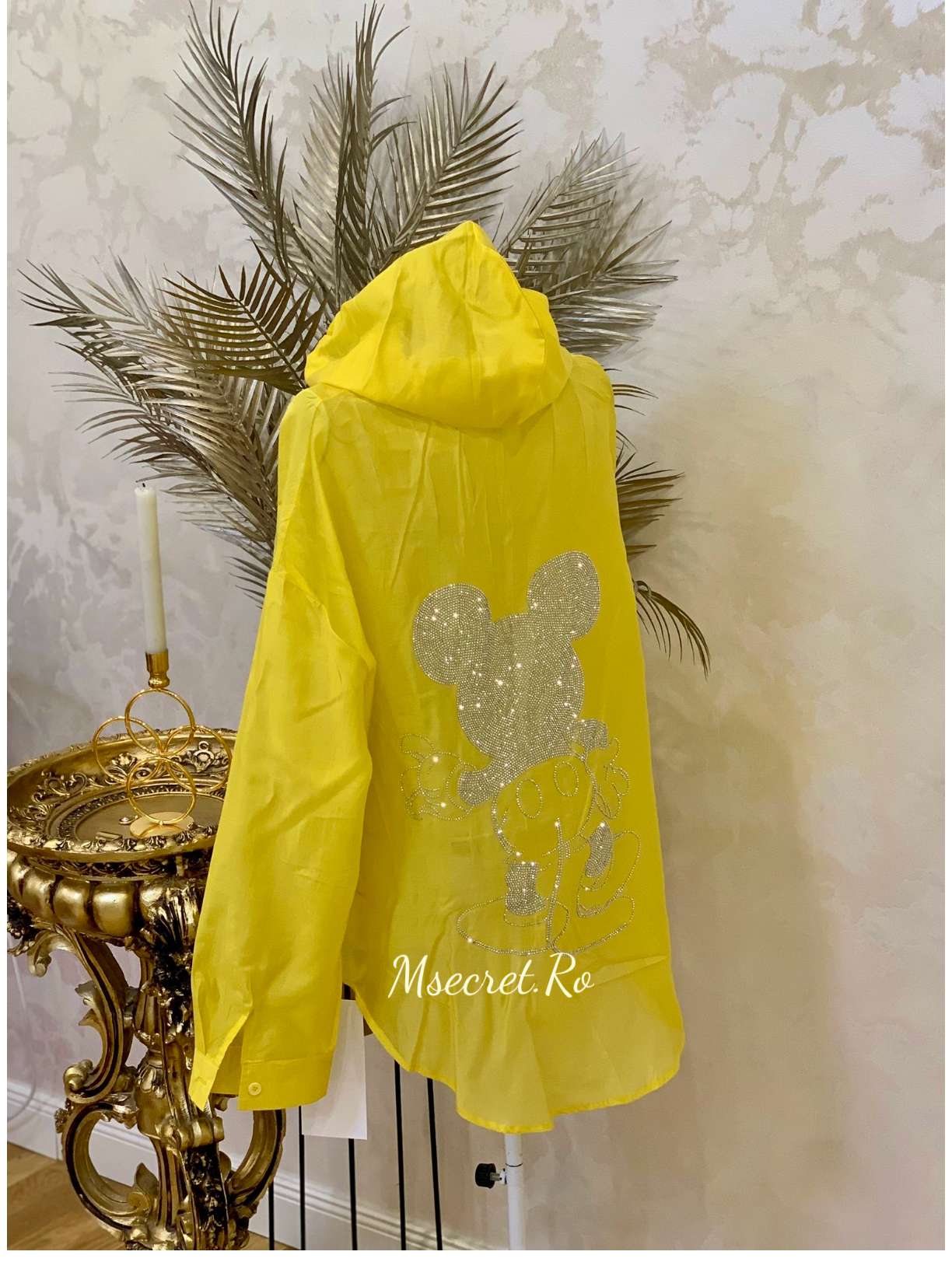 Geaca lunga animal print cu gluga, guler de blana naturala