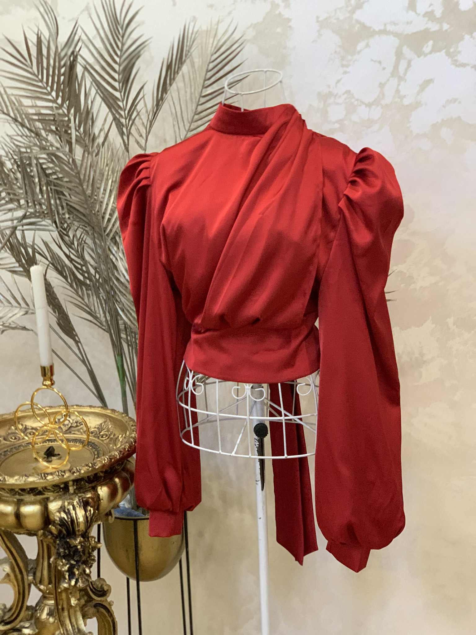 Camasa rosie din satin cu detaliu auriu