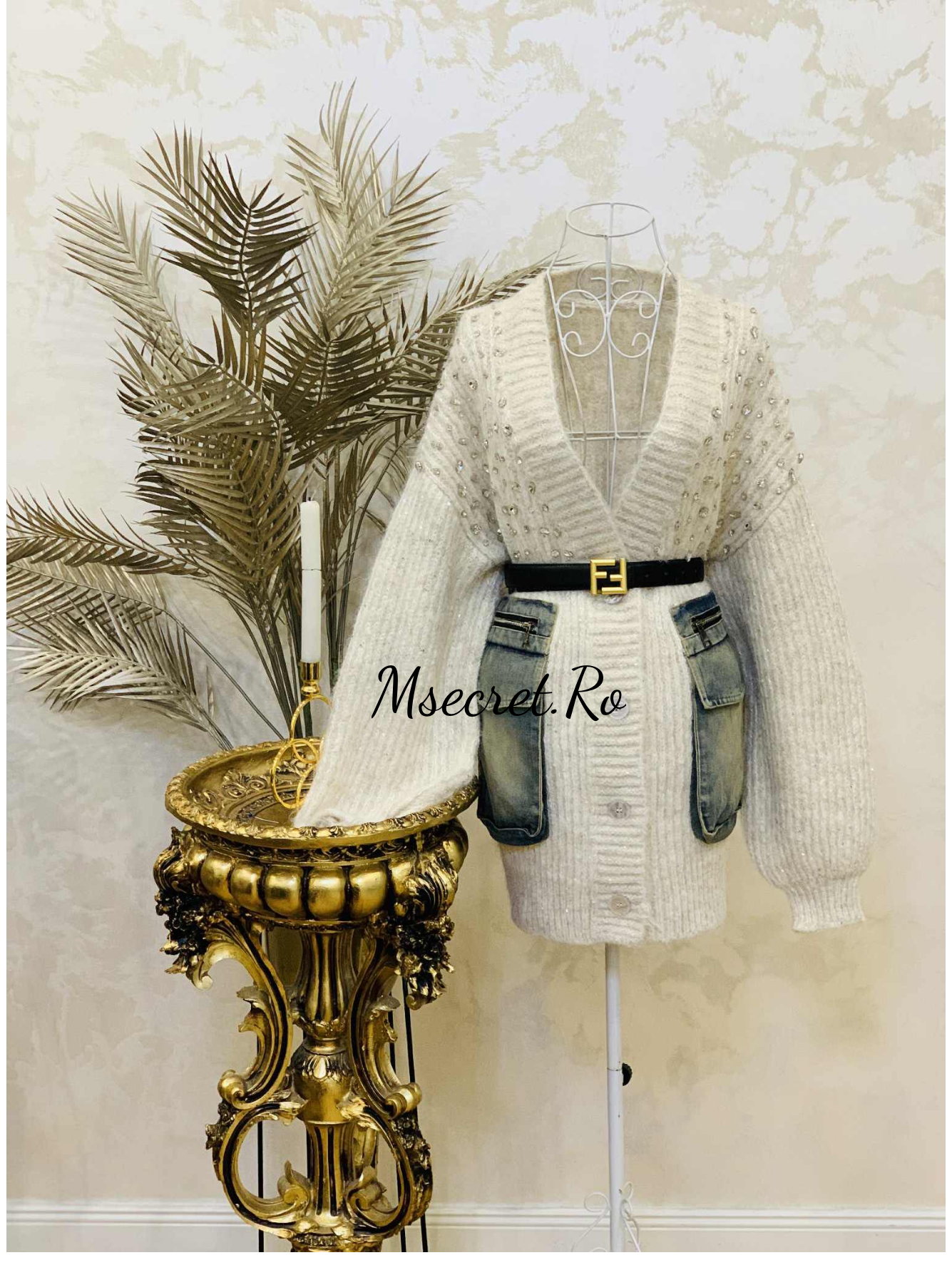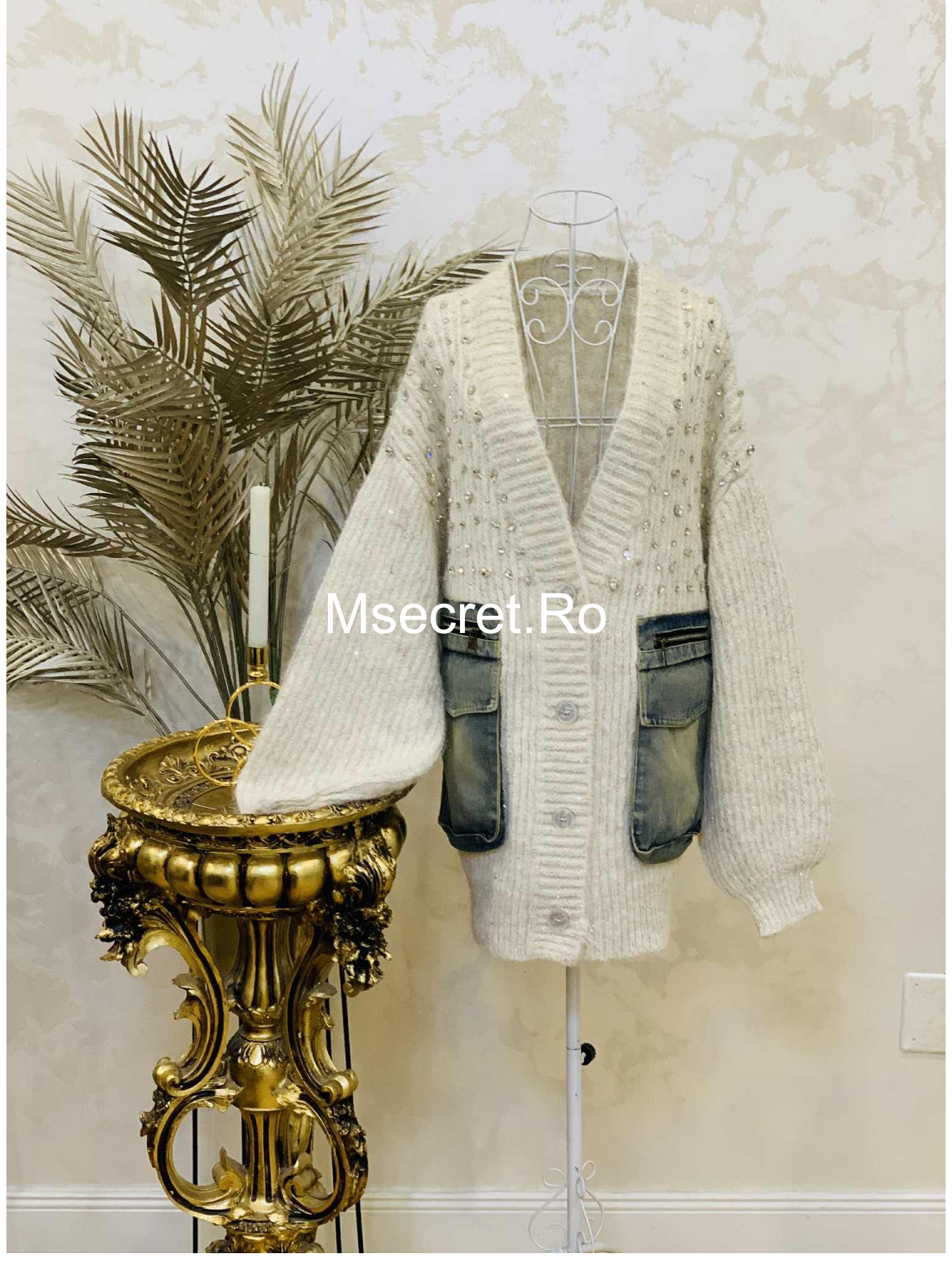 Acest cardigan din lana este piesa perfectă pentru a adăuga o notă de eleganță și căldură garderobei tale. Confecționat din lana, materialul oferă o textură moale și confortabilă, fiind ideal pentru zilele mai răcoroase. Detaliile cu denim adaugă un plus de rafinament, transformând acest cardigan într-o piesă statement.Croiul lejer și buzunarele funcționale îl fac perfect atât pentru purtarea zilnică, cât și pentru ocazii speciale. Alege acest cardigan pentru un look chic și rafinat, fără a renunța la confortul oferit de materialul său premium.