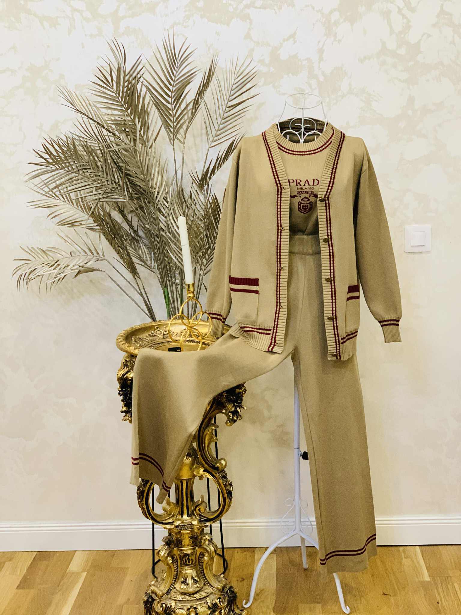 Format din 3 piese: cardigan, vesta si pantaloni lungi cu talie elastica