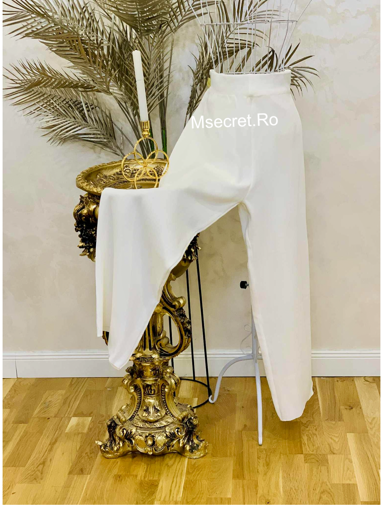 Compleu alb cu pulover si pantaloni lungi din tricot