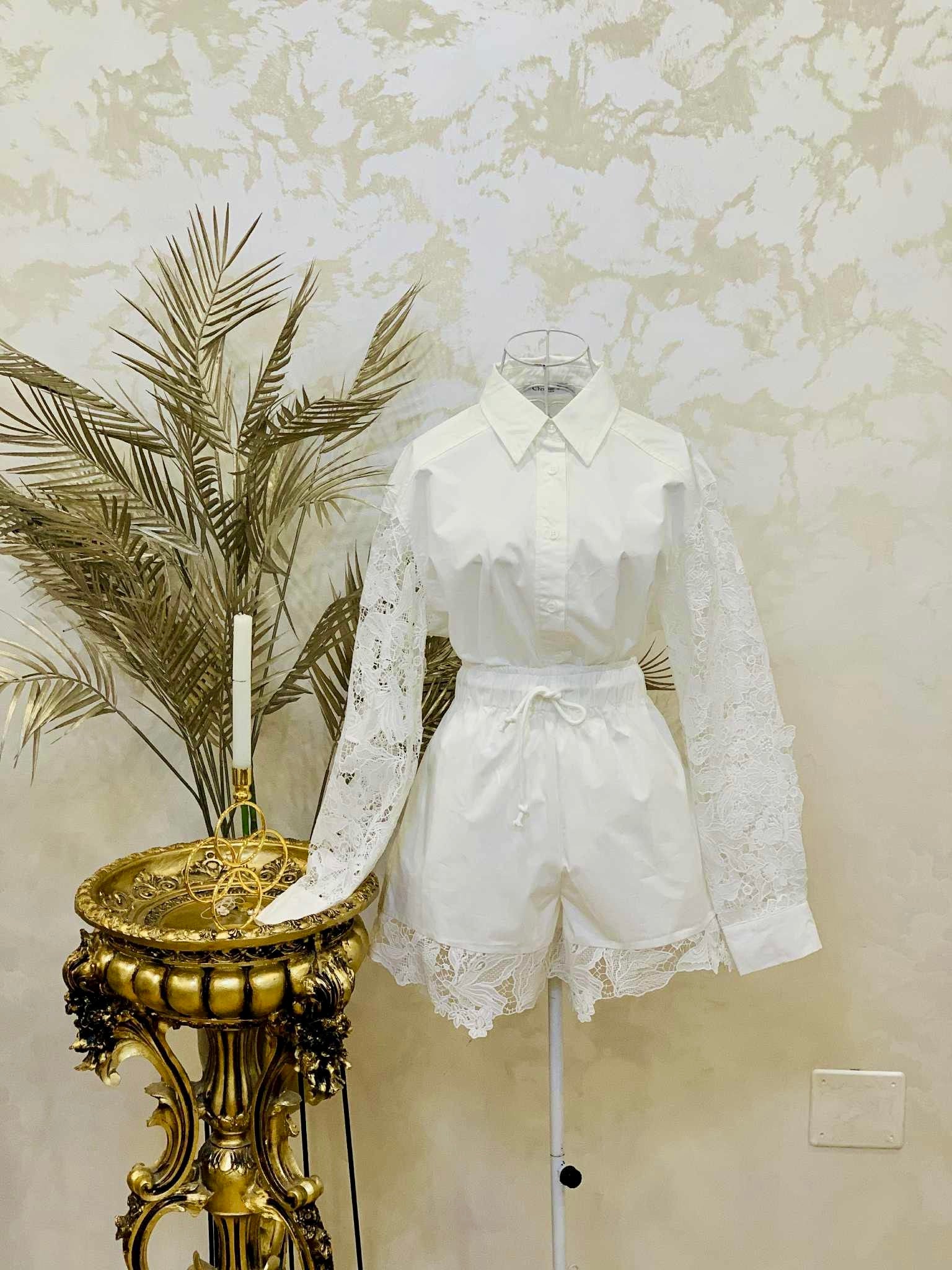 - Set două piese: bluză cu mâneci bufante și pantaloni cu talie marcată