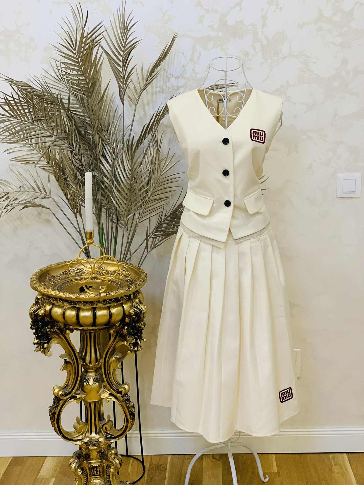 Compleu bej cu fusta si vesta