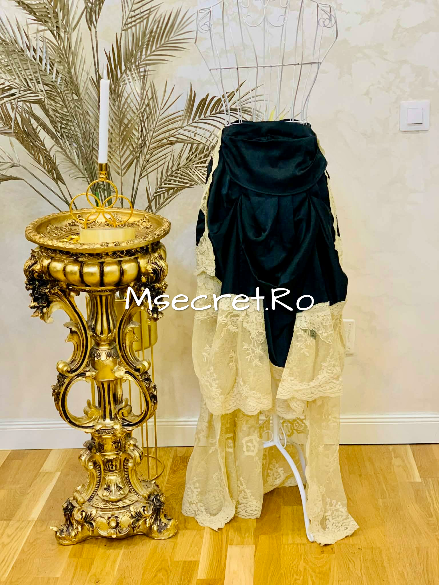 Compleu negru cu fusta pantalon si jacheta cu volane