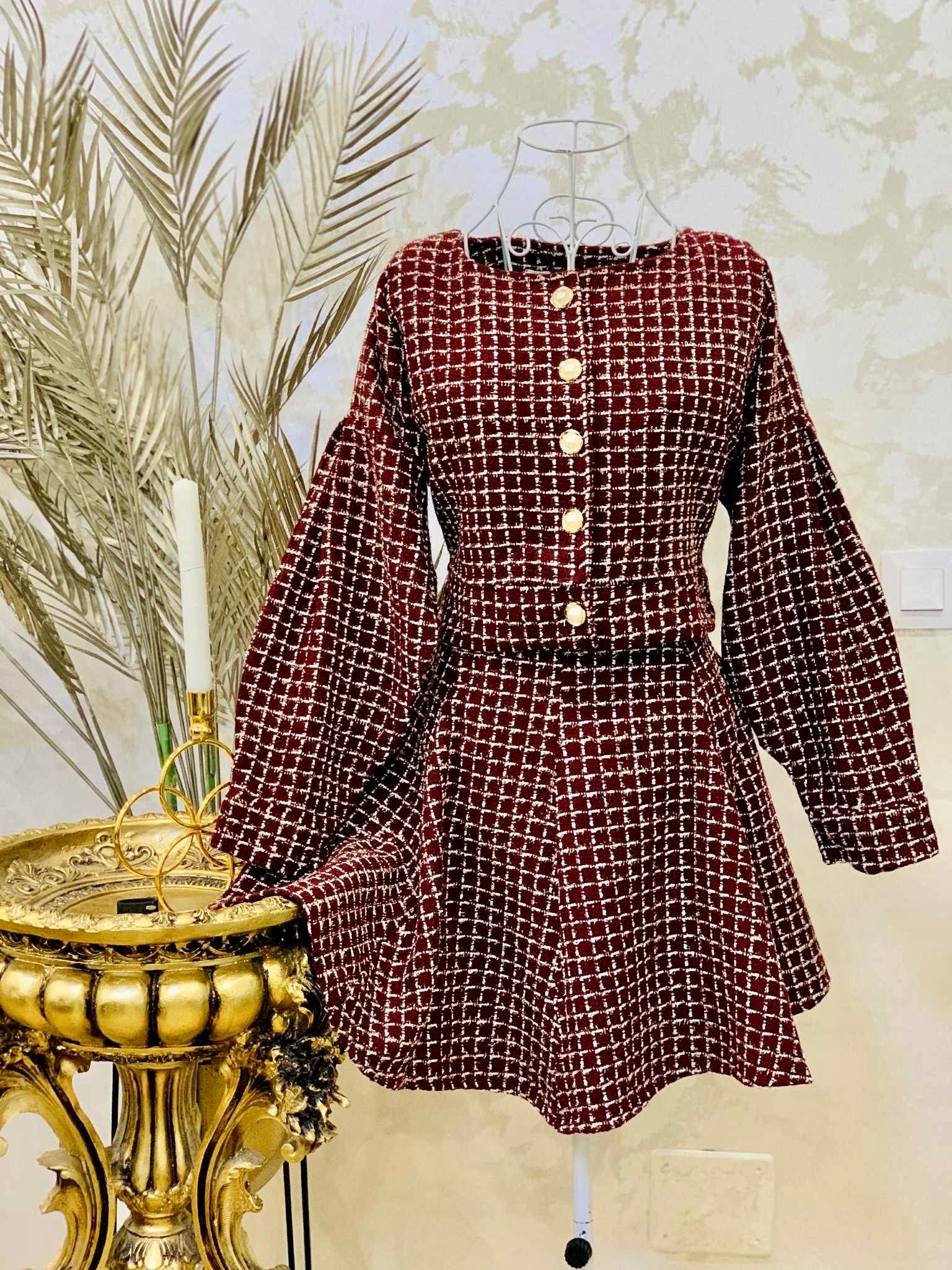 Compleu din tweed cu sacou si rochie
