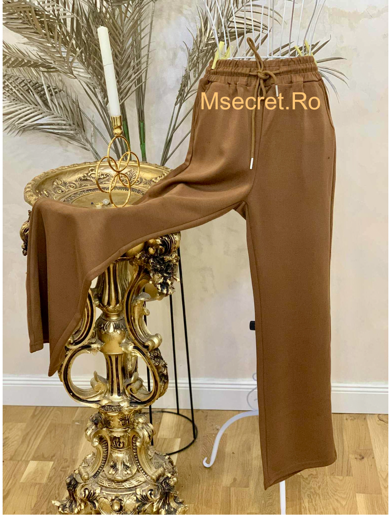Compleu maro din bumbac cu pantaloni lungi si hanorac