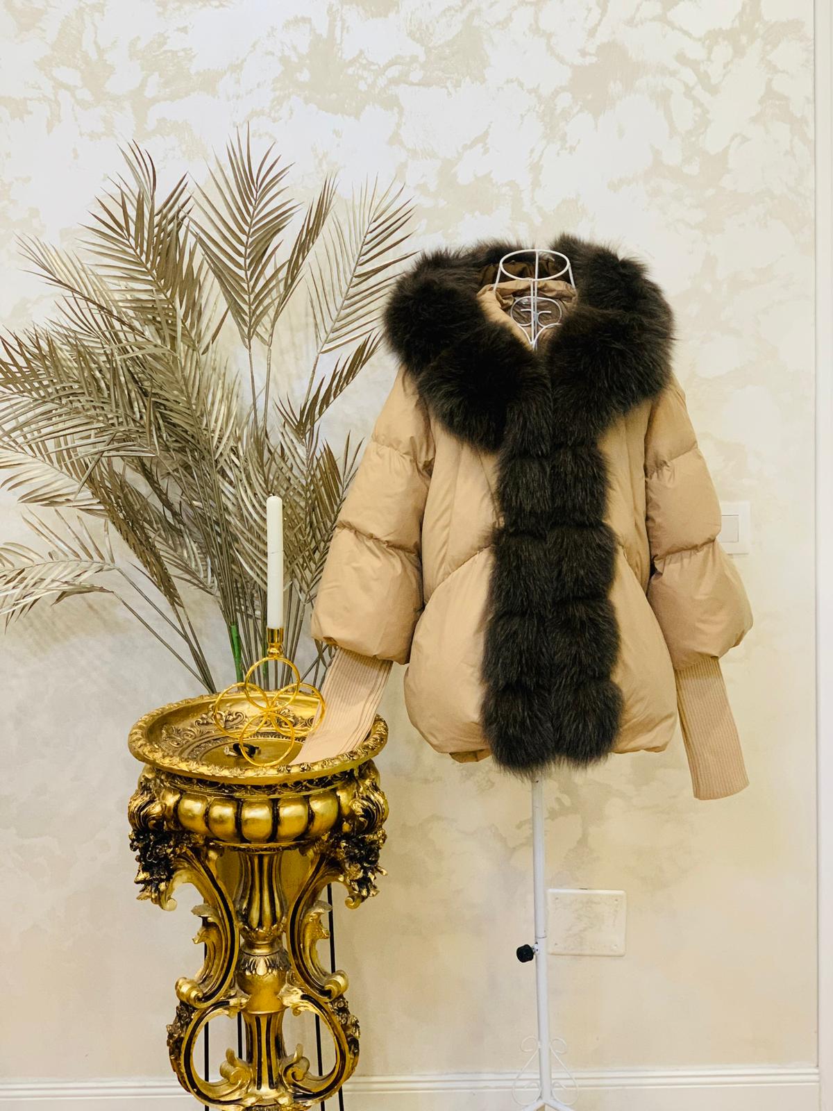 Această haină spectaculoasă combină eleganța blănii naturale de vulpe cu funcționalitatea unei jachete moderne și călduroase. Cu umplutură din puf, haina asigură o izolație excelentă împotriva frigului, fiind ideală pentru iernile reci. Manșetele elastice și croiala ușor oversize asigură un confort sporit și libertate de mișcare. Poart-o cu jeanși pentru un look casual-chic sau peste o rochie elegantă pentru a crea o ținută glamour. Aceasta este haina perfectă pentru femeia modernă care nu face compromisuri între stil și confort!
