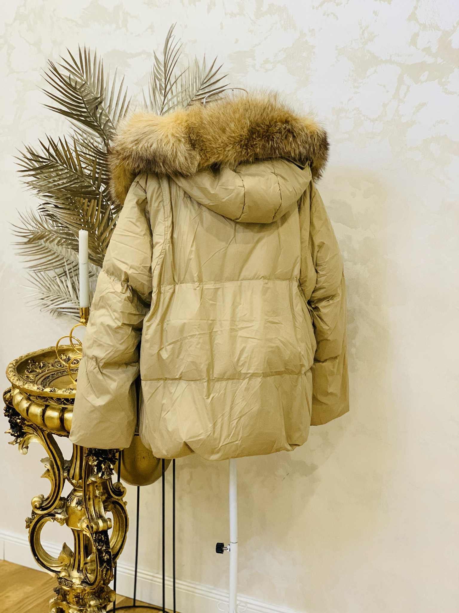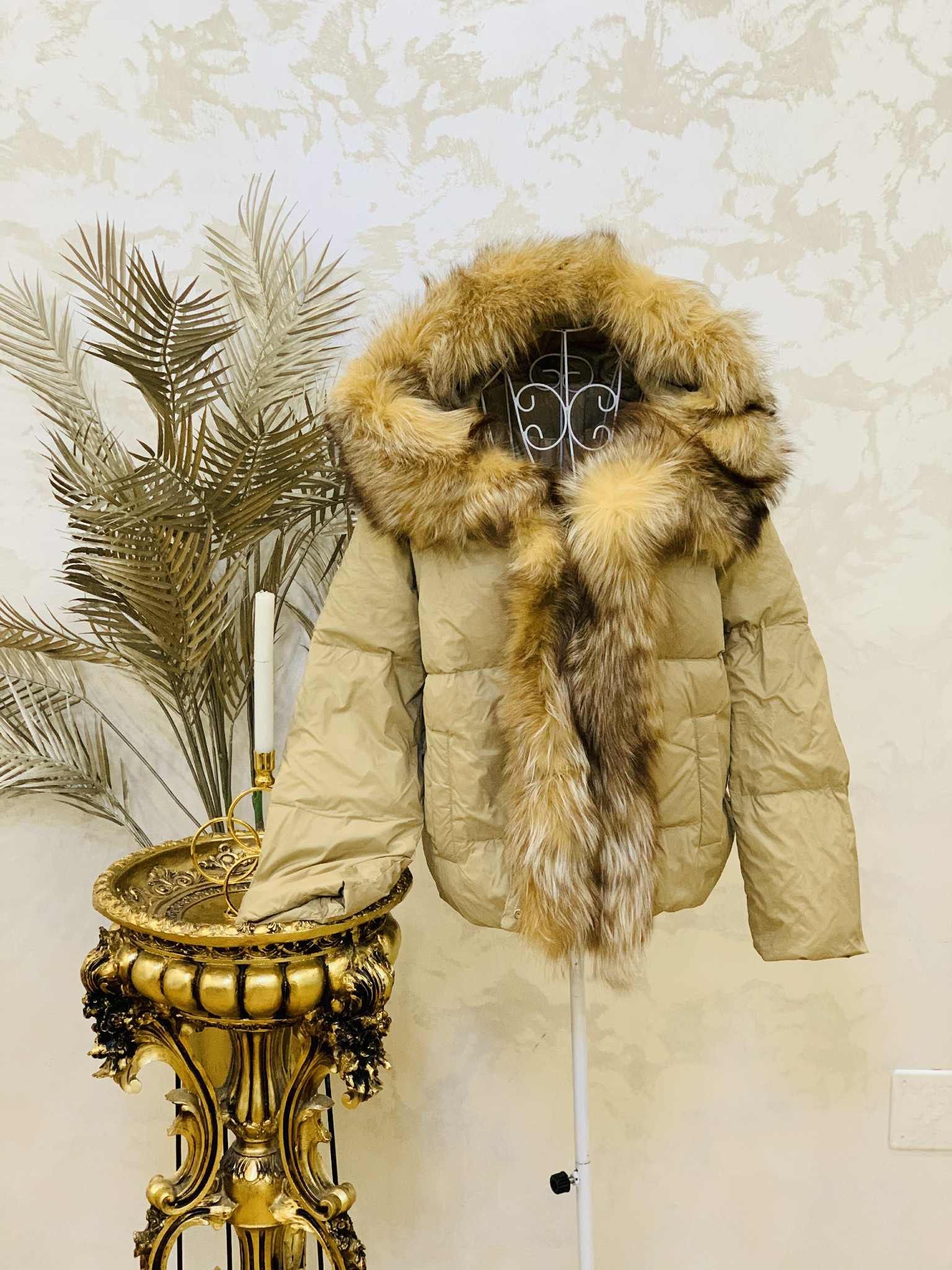 Geaca cu guler de blana de vulpe umpluta cu puf