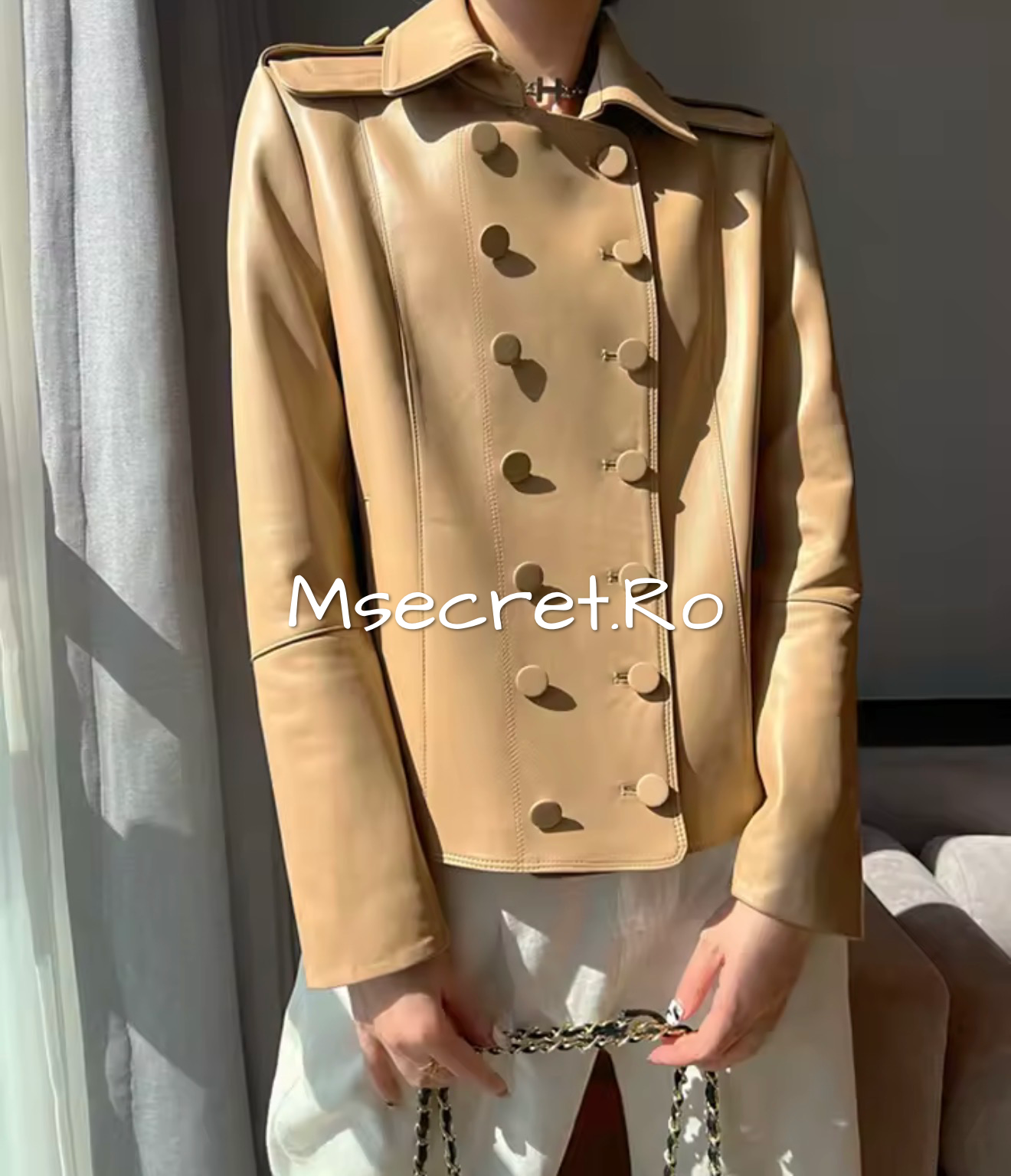 Geaca din piele naturala bej