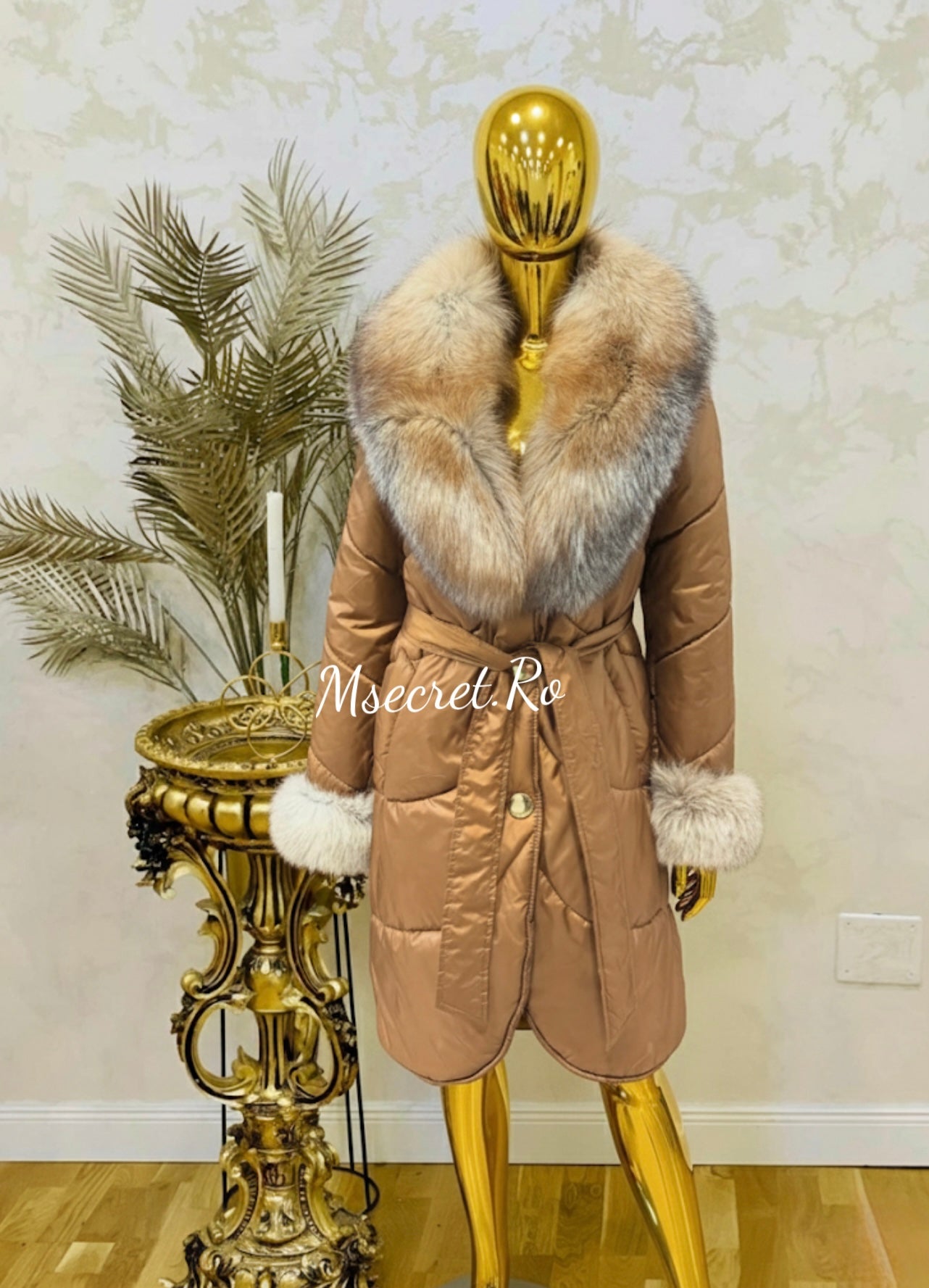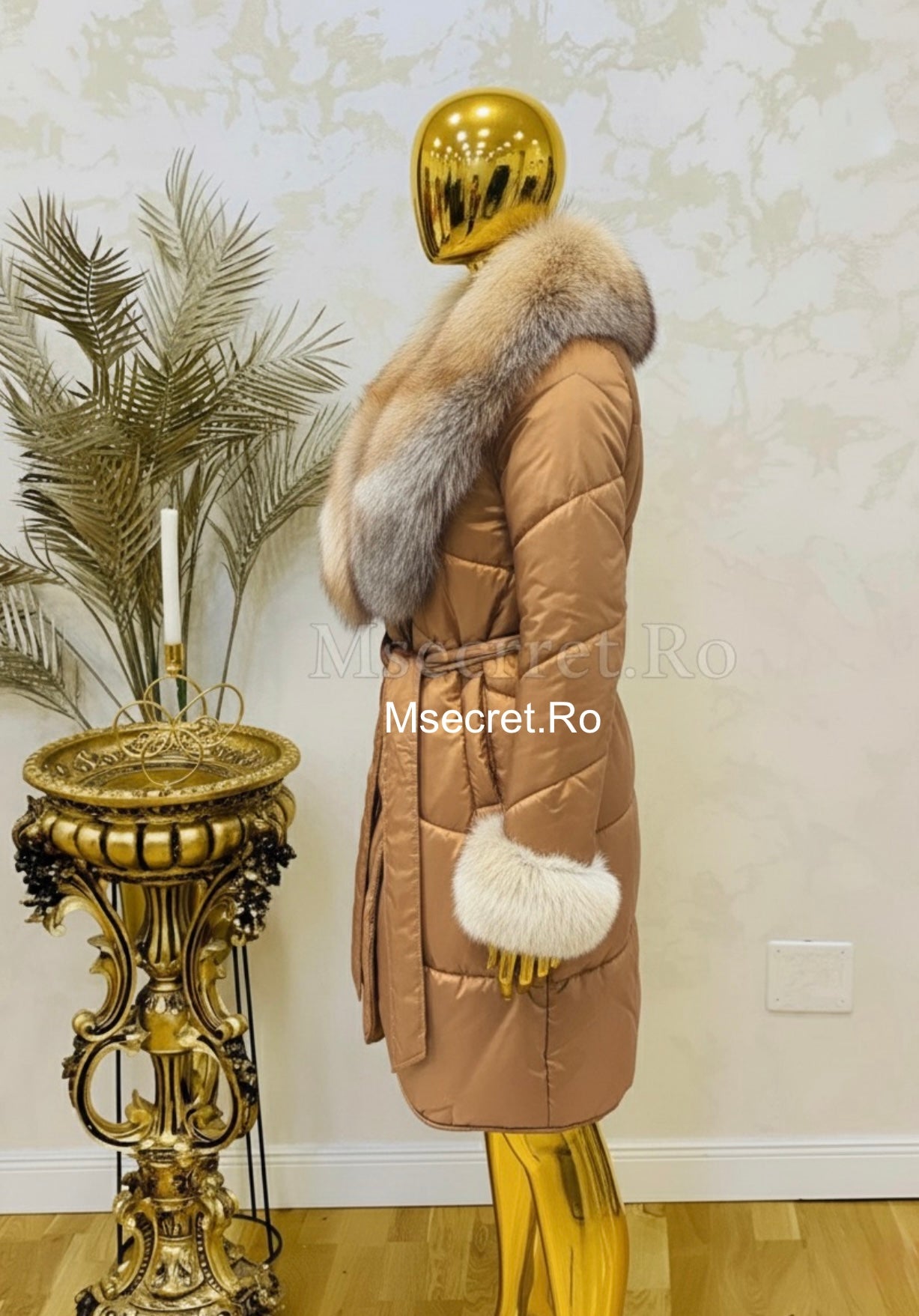 • Material: Impermeabil și antivânt, cu blană naturală de vulpe