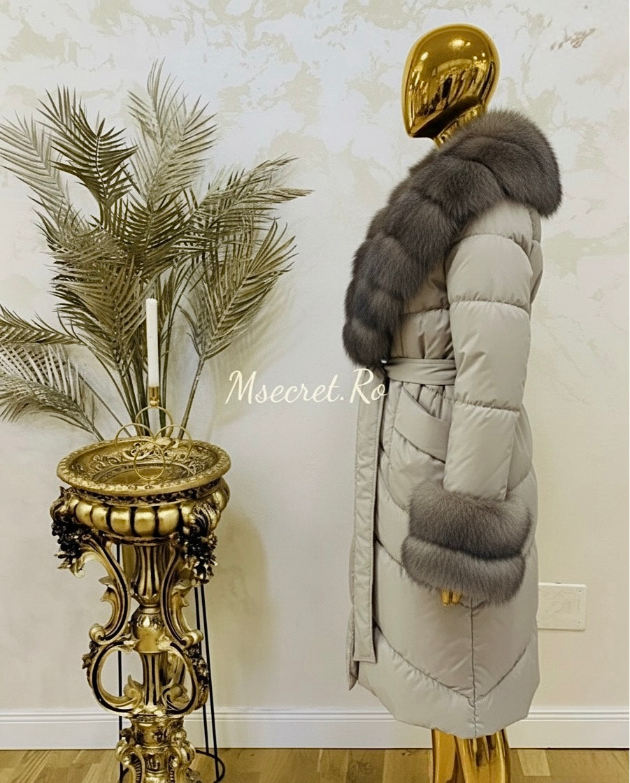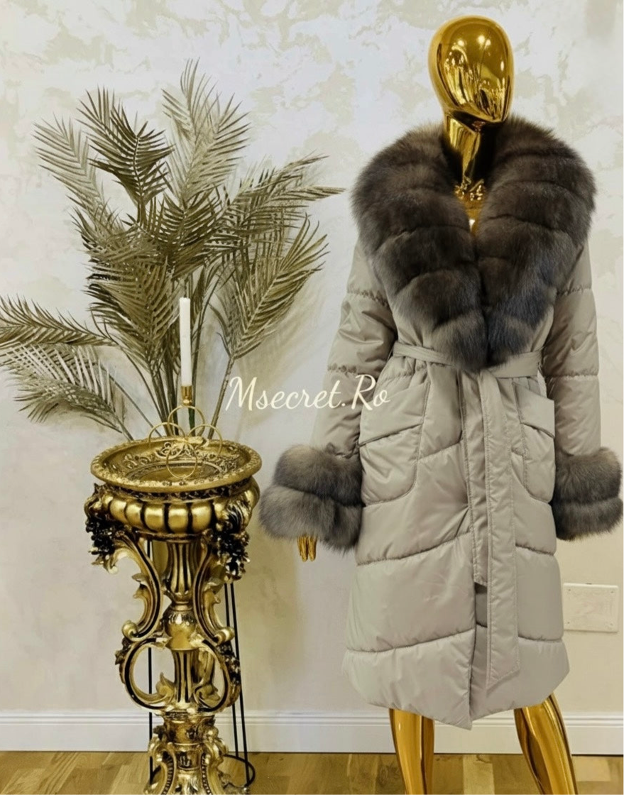 Aceasta geaca eleganta, cu guler și manșete din blană naturală de vulpe, este perfecta pentru a face față sezonului rece cu stil și confort. Designul sofisticat combină funcționalitatea cu rafinamentul, fiind ideal pentru ținutele de iarnă. Materialul impermeabil și rezistent la vânt asigură protecție optimă împotriva frigului, iar buzunarele adaugă un plus de utilitate.