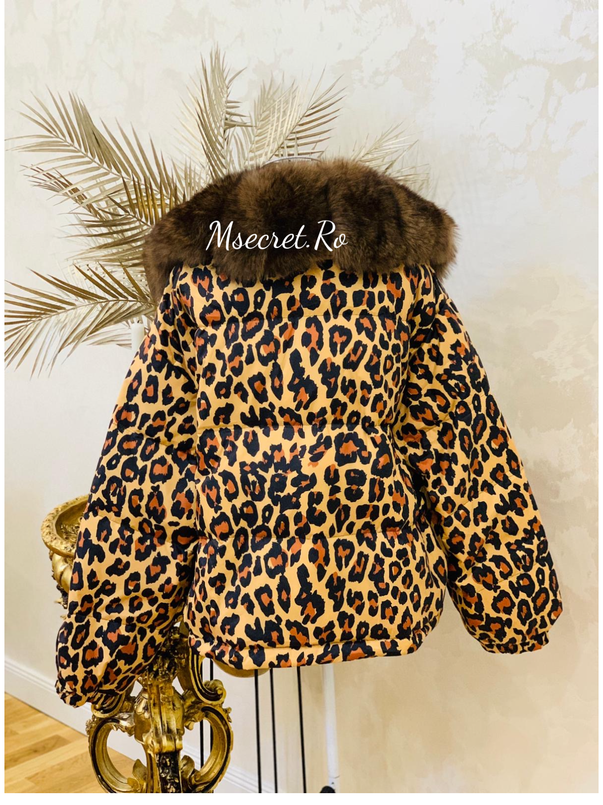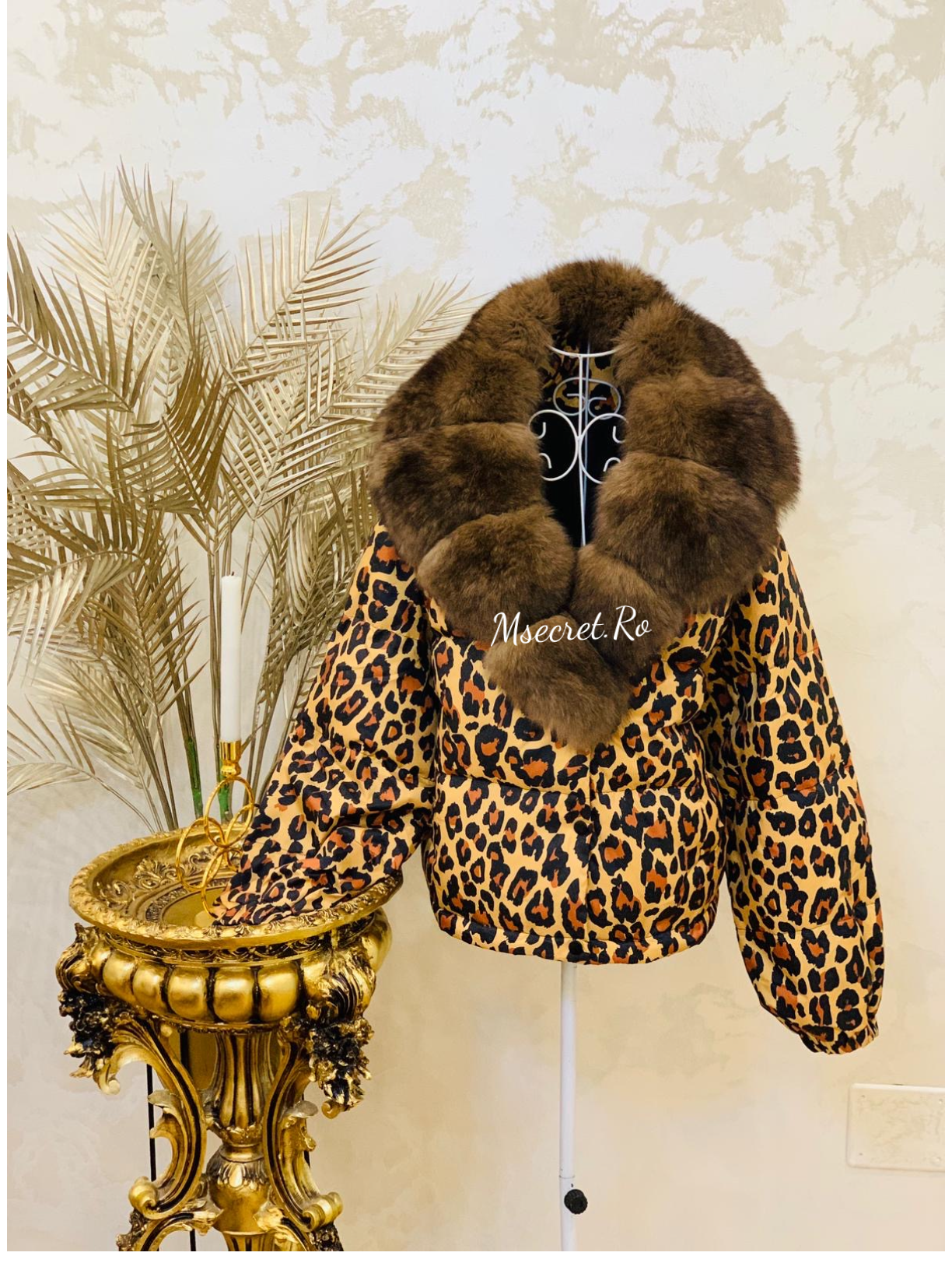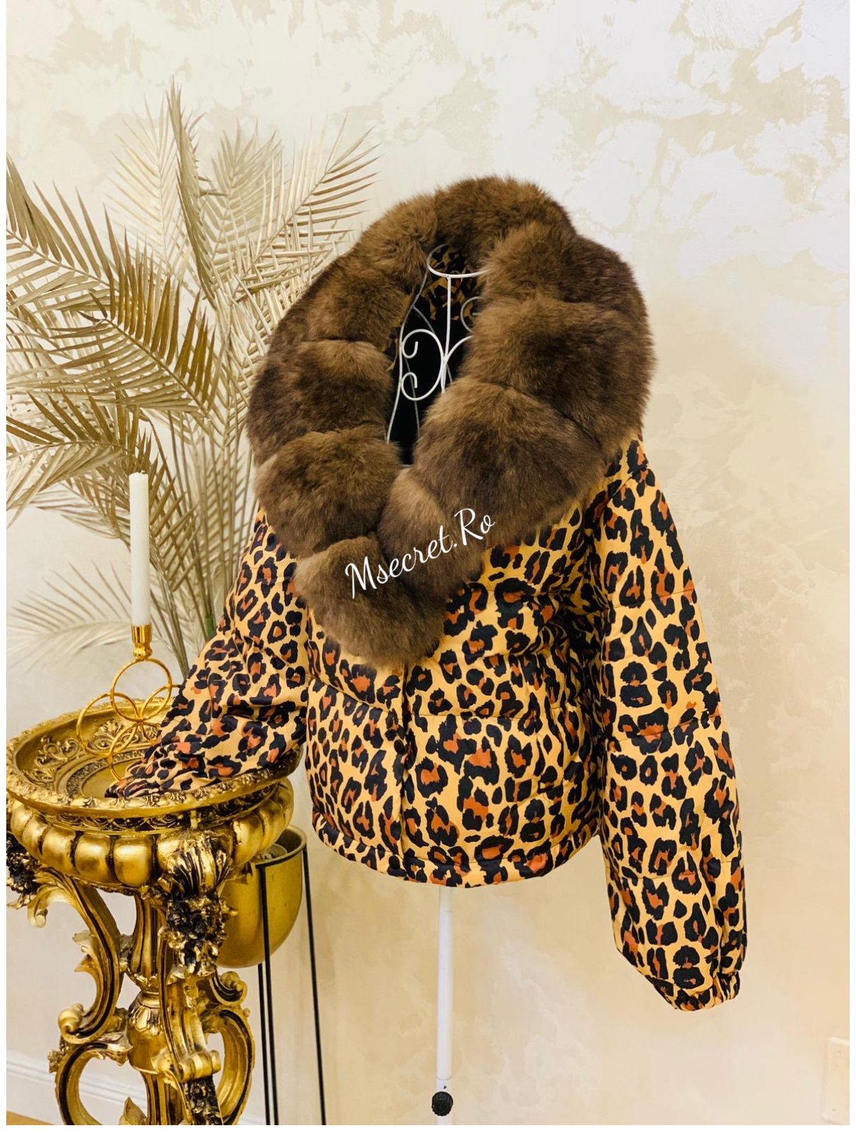 Această geacă cu imprimeu leopard este ideală pentru un look îndrăzneț și sofisticat în sezonul rece. Umplutura cu puf oferă confort termic excelent, iar gulerul din blană naturală de vulpe adaugă o notă de lux și rafinament. Materialul este impermeabil și rezistent la vânt, iar buzunarele practice îți asigură confortul zilnic.