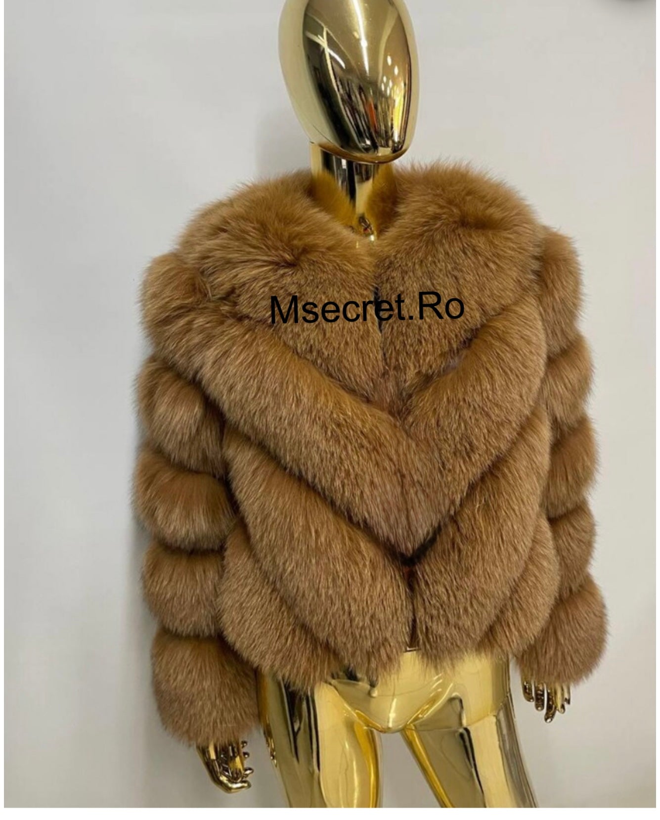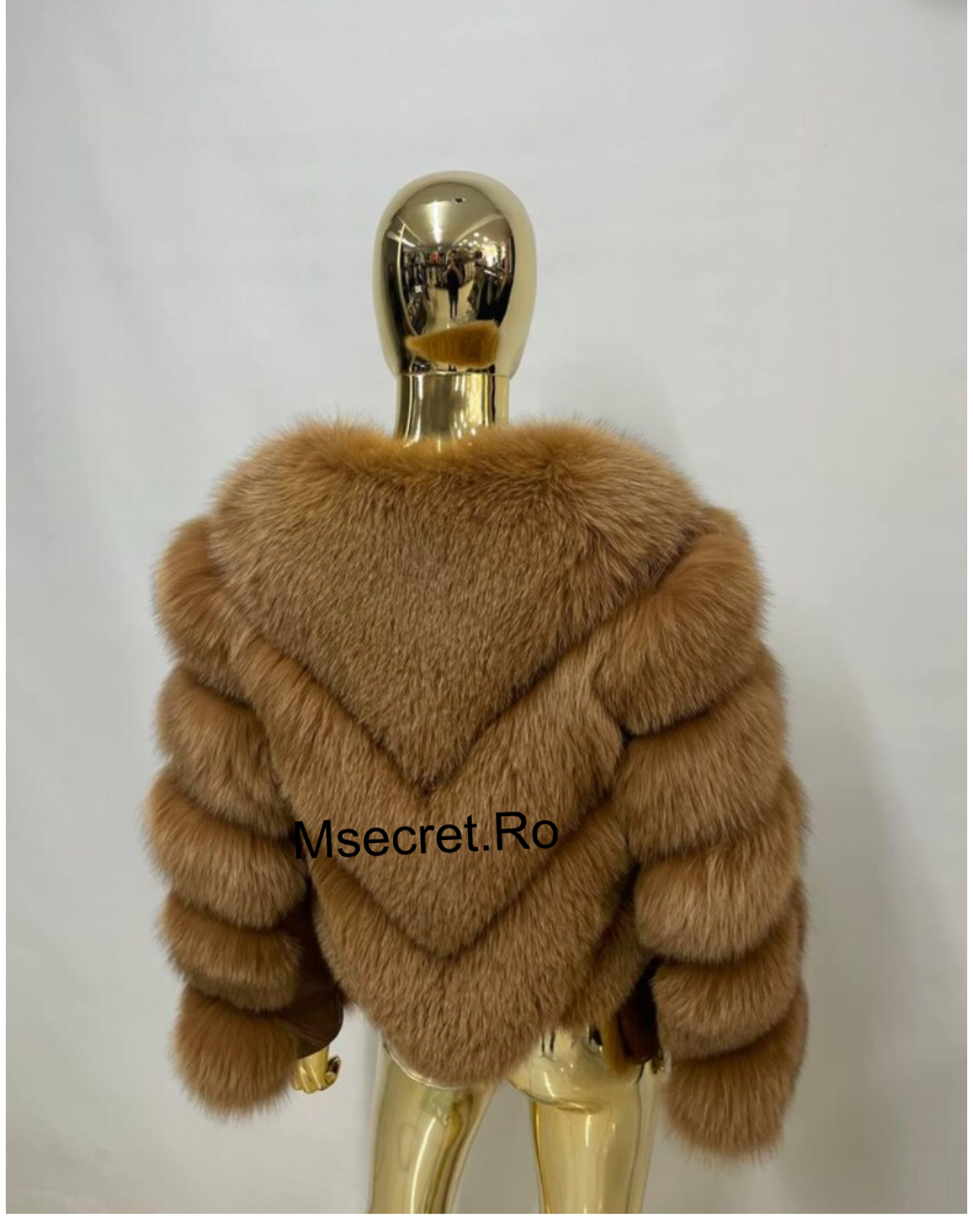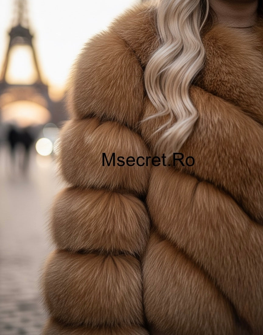 Realizată din blană naturală de vulpe de înaltă calitate, cu un luciu elegant și textură luxoasă